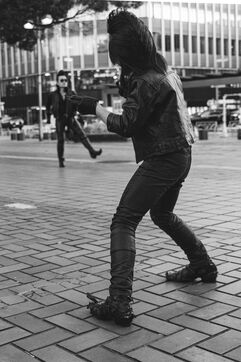 Although the movement has since lost much of its notoriety, there are still a few groups recognisable by their look – black leather, slicked-back hair and ankle boots – continuing to dance in squares, as here in Nagoya.