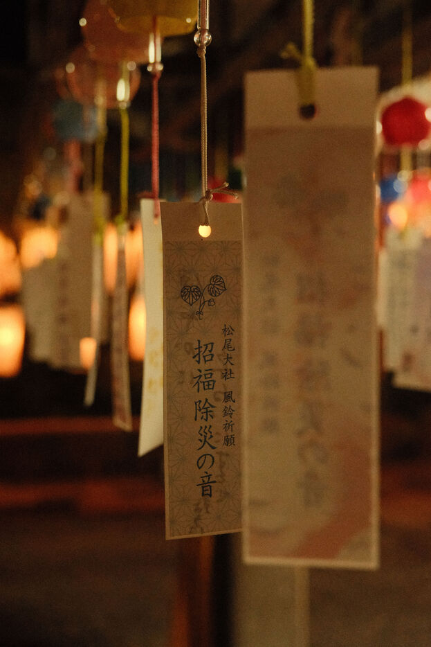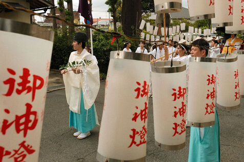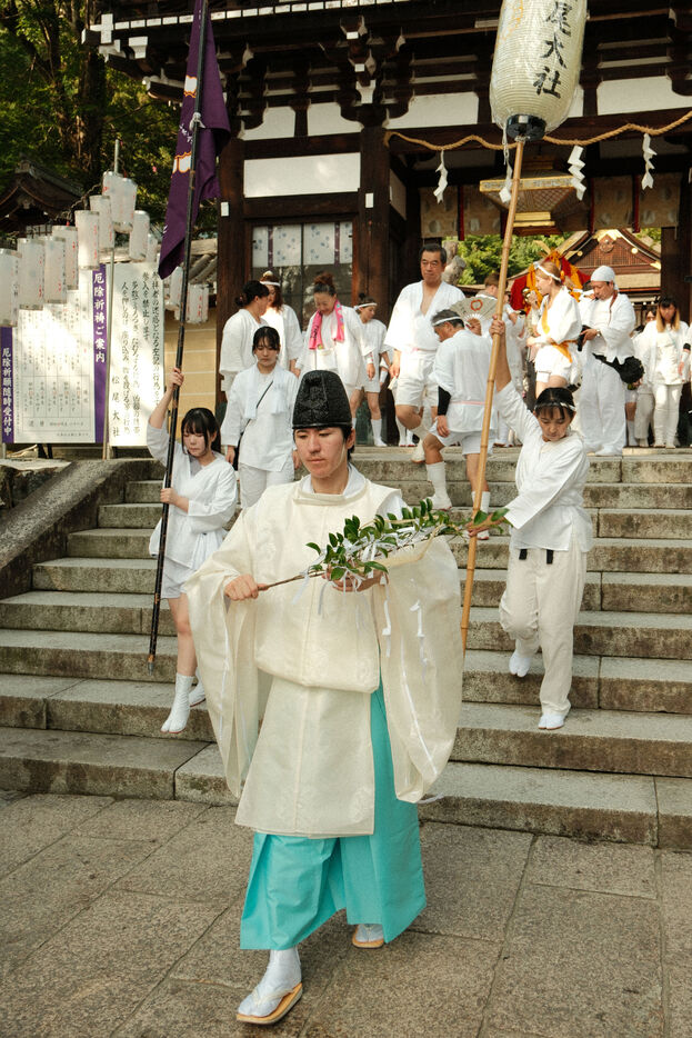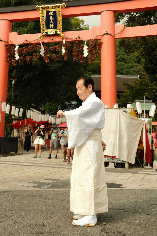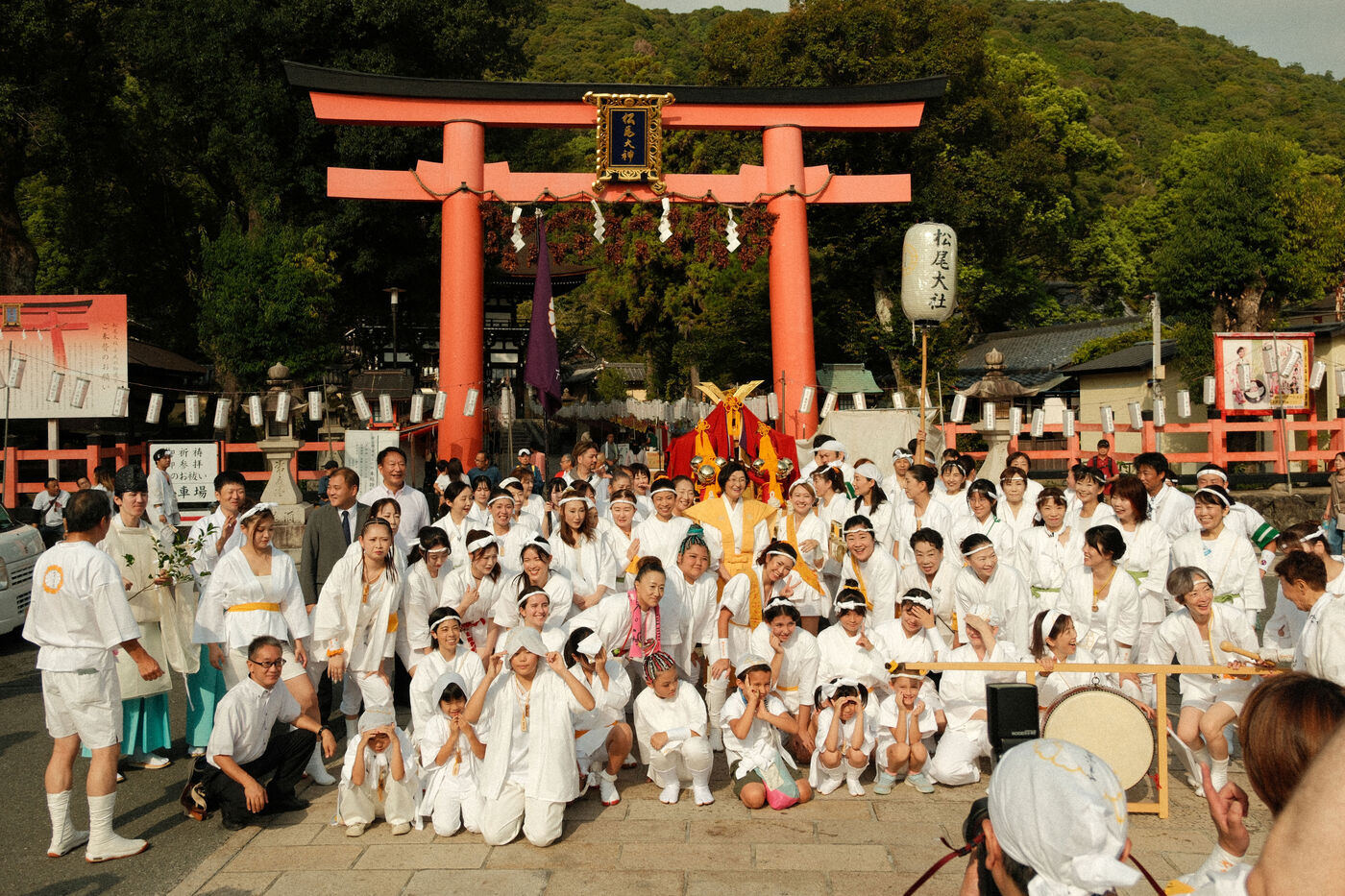 At night, the Matsuno'o Taisha Shrine is illuminated and becomes the heart of the celebrations, with dances, colorful costumes, and traditional gestures.