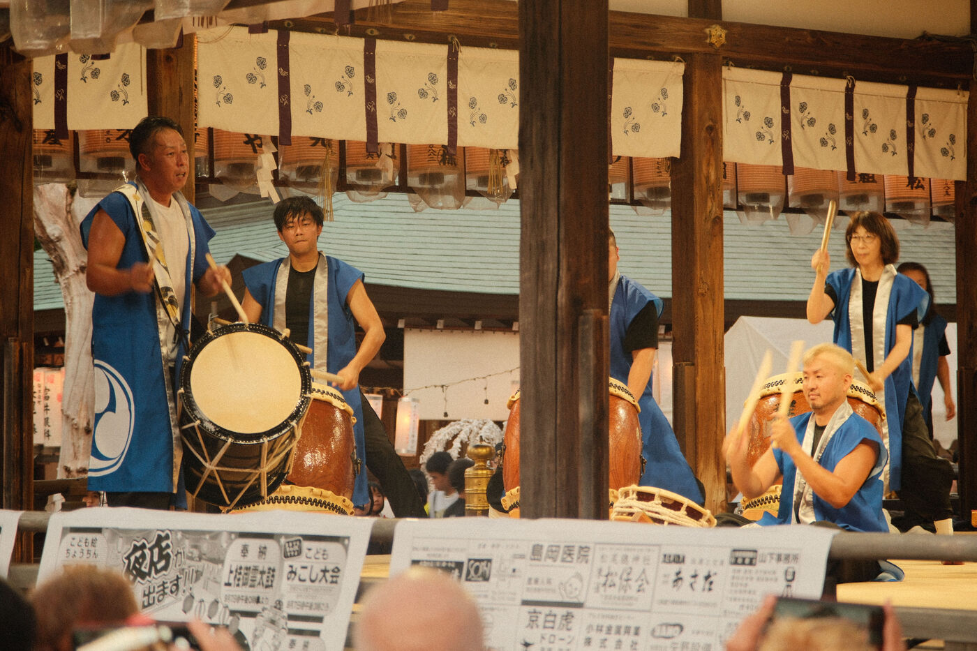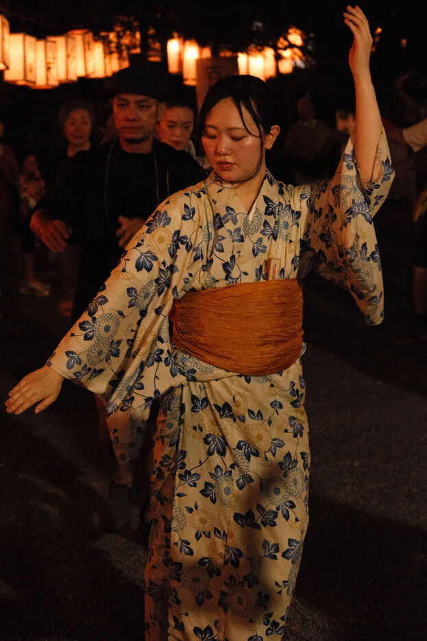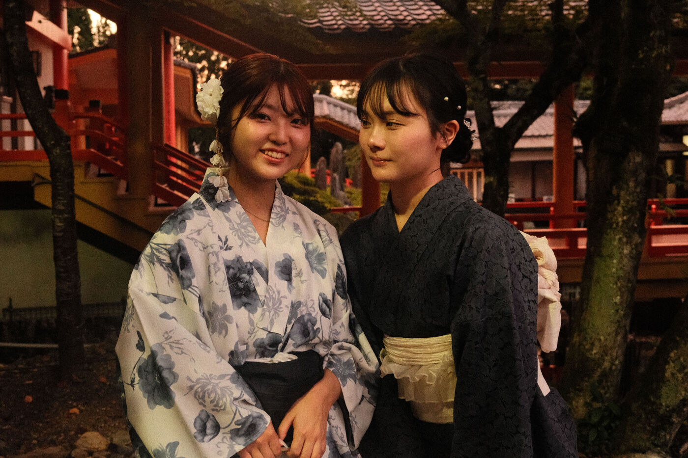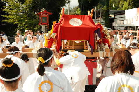 At night, the Matsuno'o Taisha Shrine is illuminated and becomes the heart of the celebrations, with dances, colorful costumes, and traditional gestures.