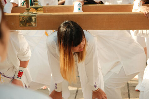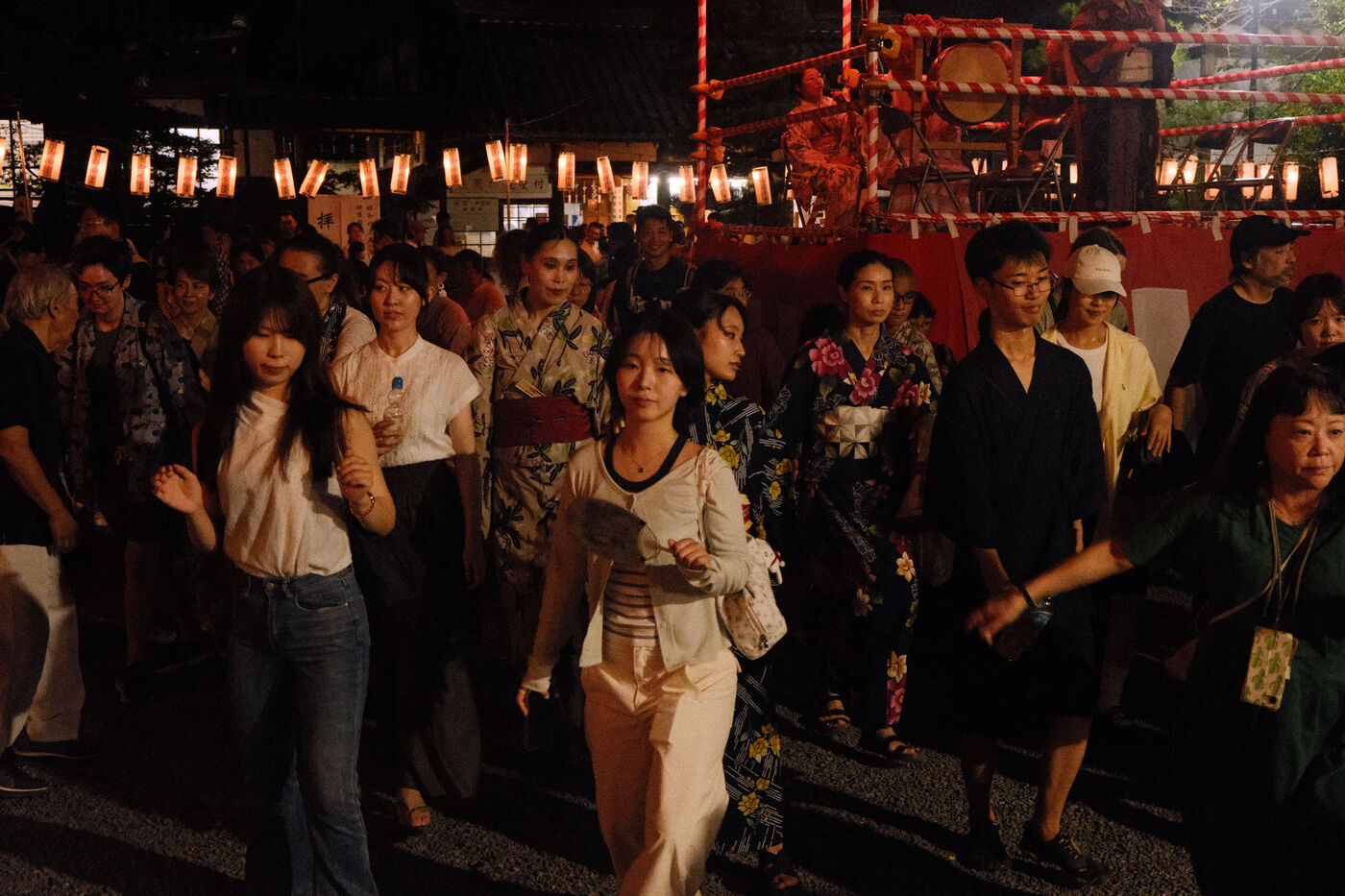 La nuit, le sanctuaire Matsuno’o Taisha s’illumine et devient le cœur des célébrations, avec danses, costumes colorés et gestes traditionnels.