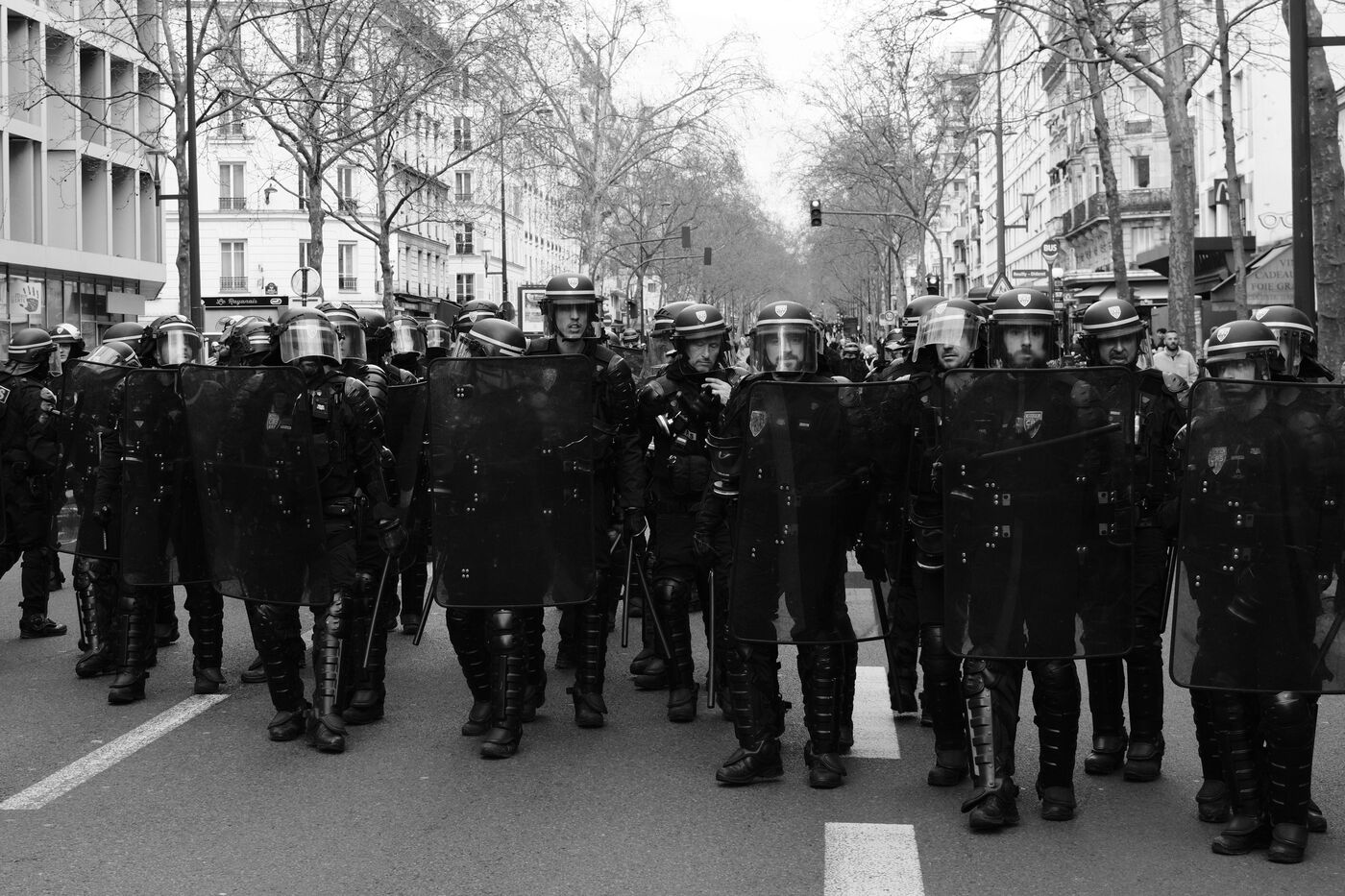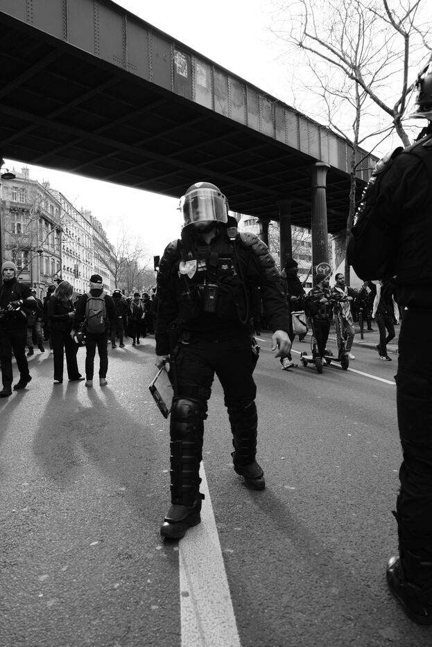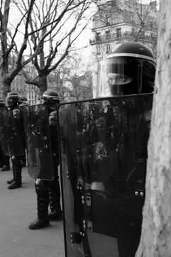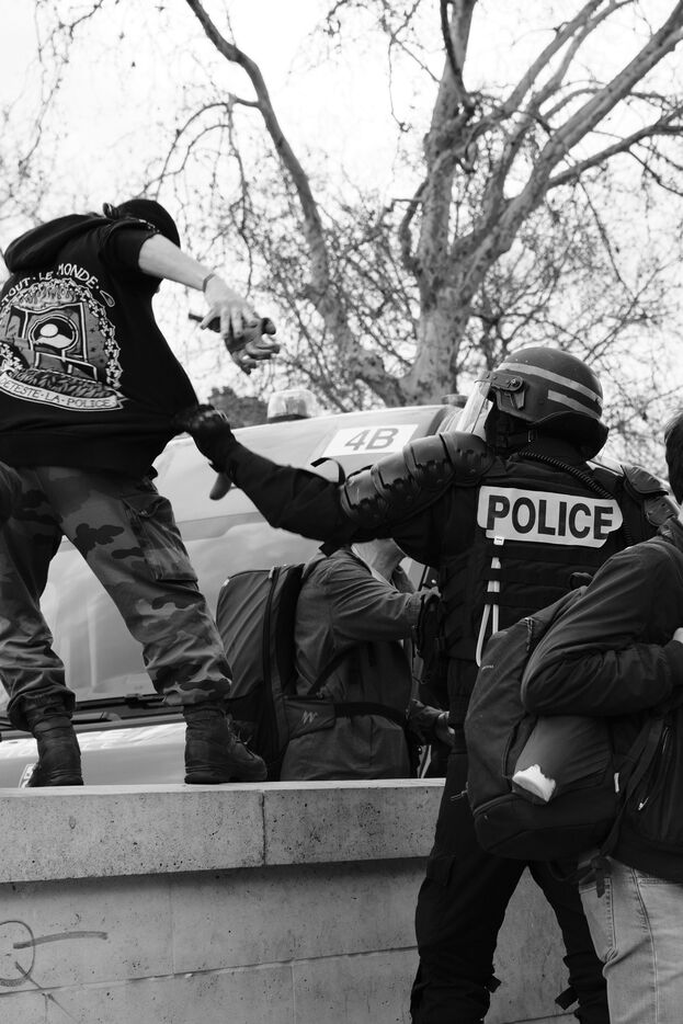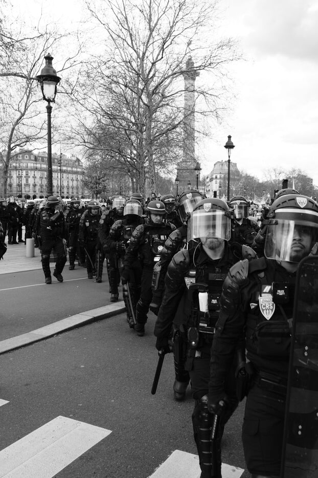 Shields of pressure explores, in black and white, the presence of riot police at the heart of social movements in Paris. Through action scenes, moments of confrontation, and suspended moments, the series documents the mechanics of maintaining order: shield formations, charges, retreats, rapid interventions, but also waiting, fatigue, and coordinated gestures.