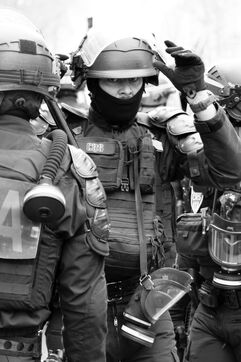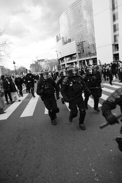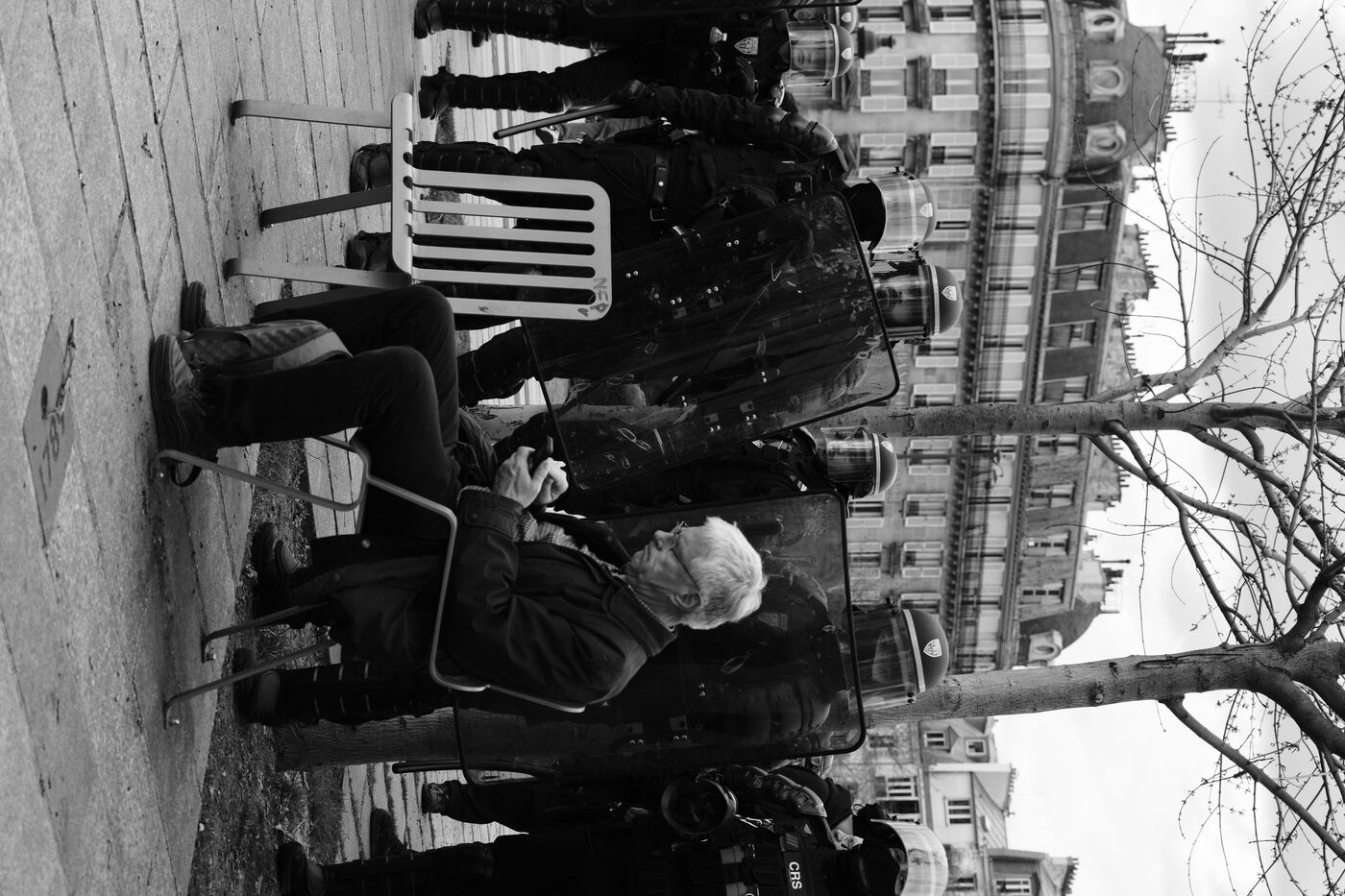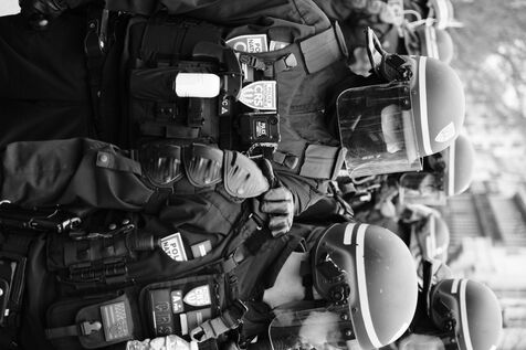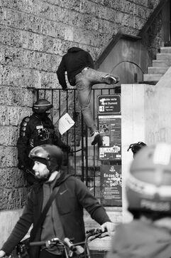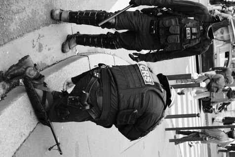 Between clashes, collective strategies, and interactions with the crowd, this series seeks to show not only the intensity of the operations but also the human element behind the uniform: glances, postures, gestures, moments of exhaustion and vigilance.