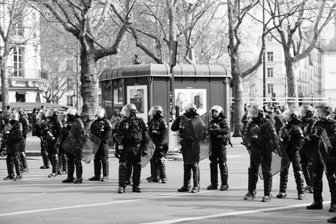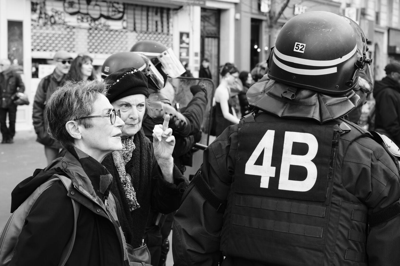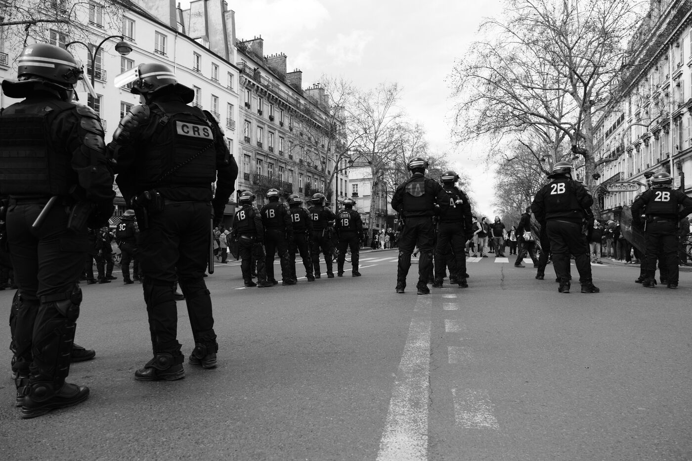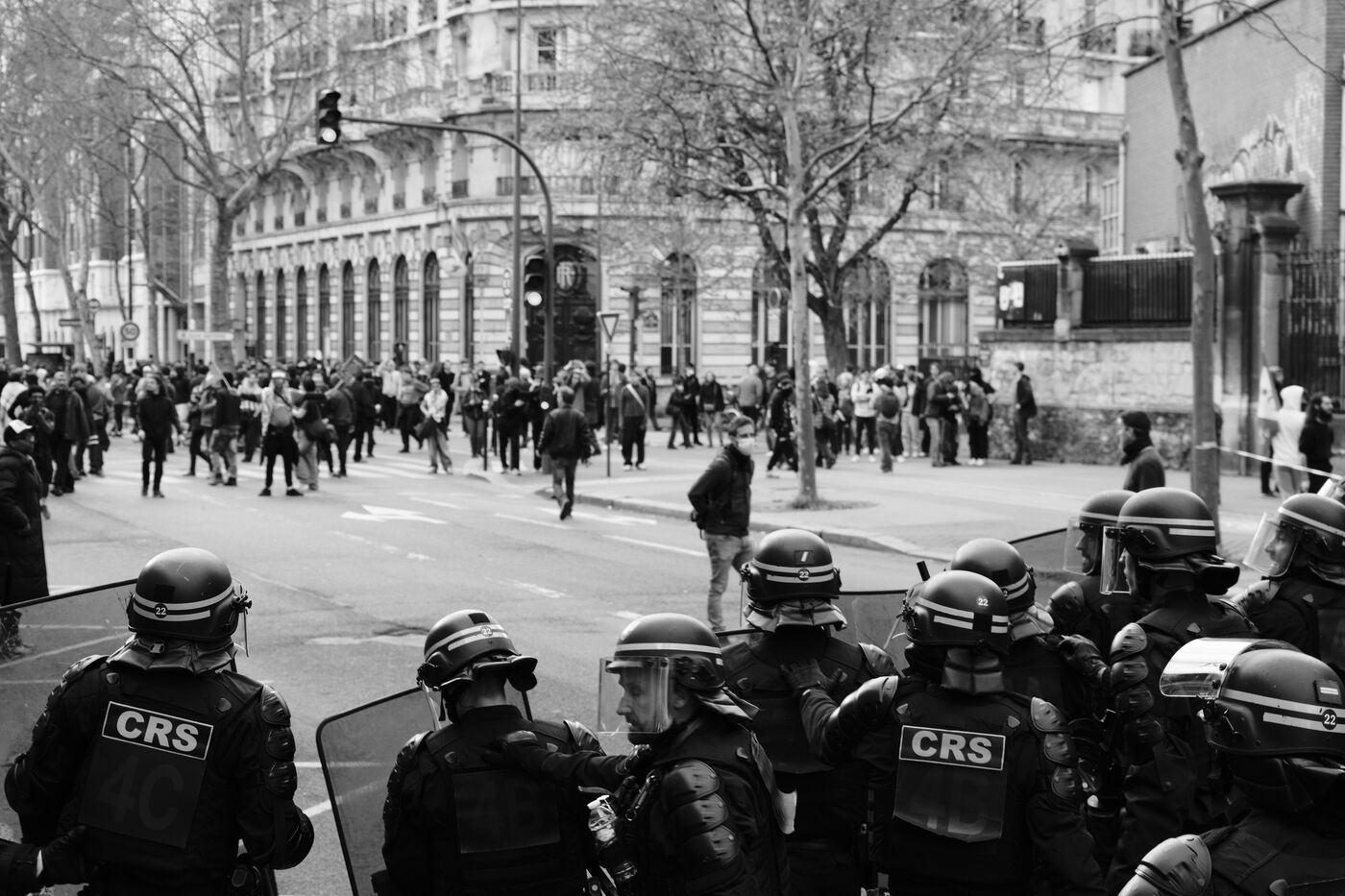 Boucliers de pression explore, en noir et blanc, la présence des unités anti-émeutes au cœur des mouvements sociaux à Paris. À travers scènes d’action, moments de confrontation et instants suspendus, la série documente la mécanique du maintien de l’ordre: formations boucliers, charges, replis, interventions rapides mais aussi attentes, fatigue et gestes de coordination.