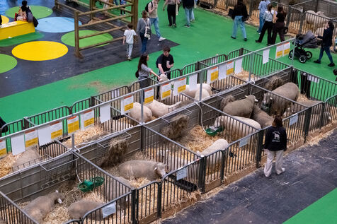 Beneath the exhibition halls, rural life unfolds before our eyes. Children approach, reach out, stroke a lamb, or watch chicks nestled in the light. Adults contemplate, ask questions, and explain.