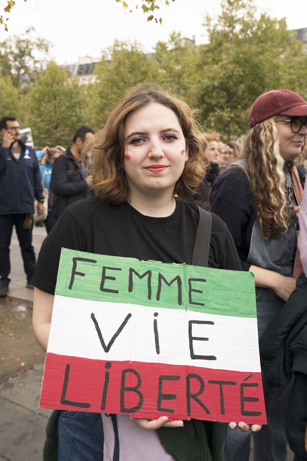 Demonstration in support of the Iranian people and in tribute to Mahsa Amini. The young woman died on September 16 after being arrested by the religious police for wearing inappropriate clothing. The suspicious circumstances of her death led to the anger of the Iranian people who have been demonstrating throughout the country ever since. The Iranian diaspora in Paris gathered once again on October 2 at the Place de la République and marched to Nation to show their support for the Iranian people and pay tribute to Jina Mahsa Amini. October 2, 2022, in Paris.