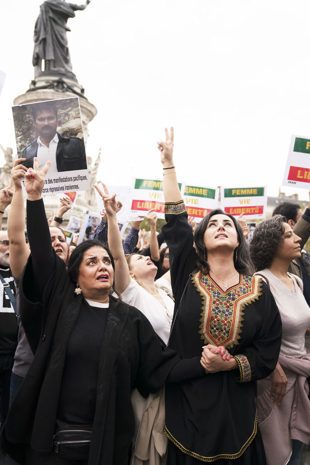 Demonstration in support of the Iranian people and in tribute to Mahsa Amini. The young woman died on September 16 after being arrested by the religious police for wearing inappropriate clothing. The suspicious circumstances of her death led to the anger of the Iranian people who have been demonstrating throughout the country ever since. The Iranian diaspora in Paris gathered once again on October 29 at the Place de la République in Paris to show their support for the Iranian people and to pay tribute to Jina Mahsa Amini.