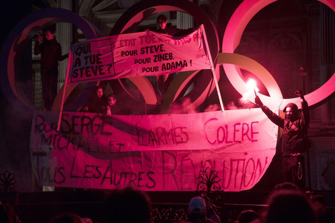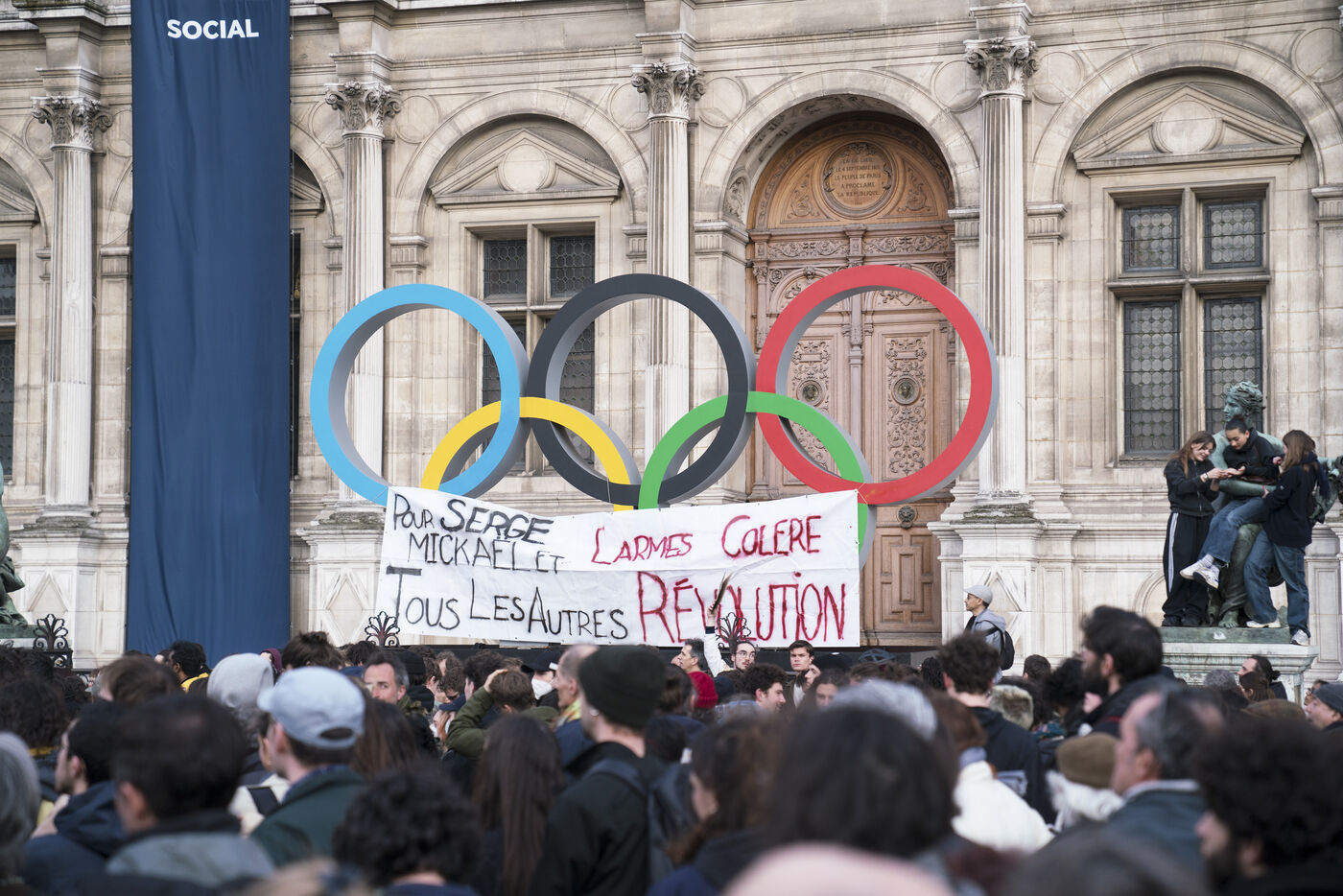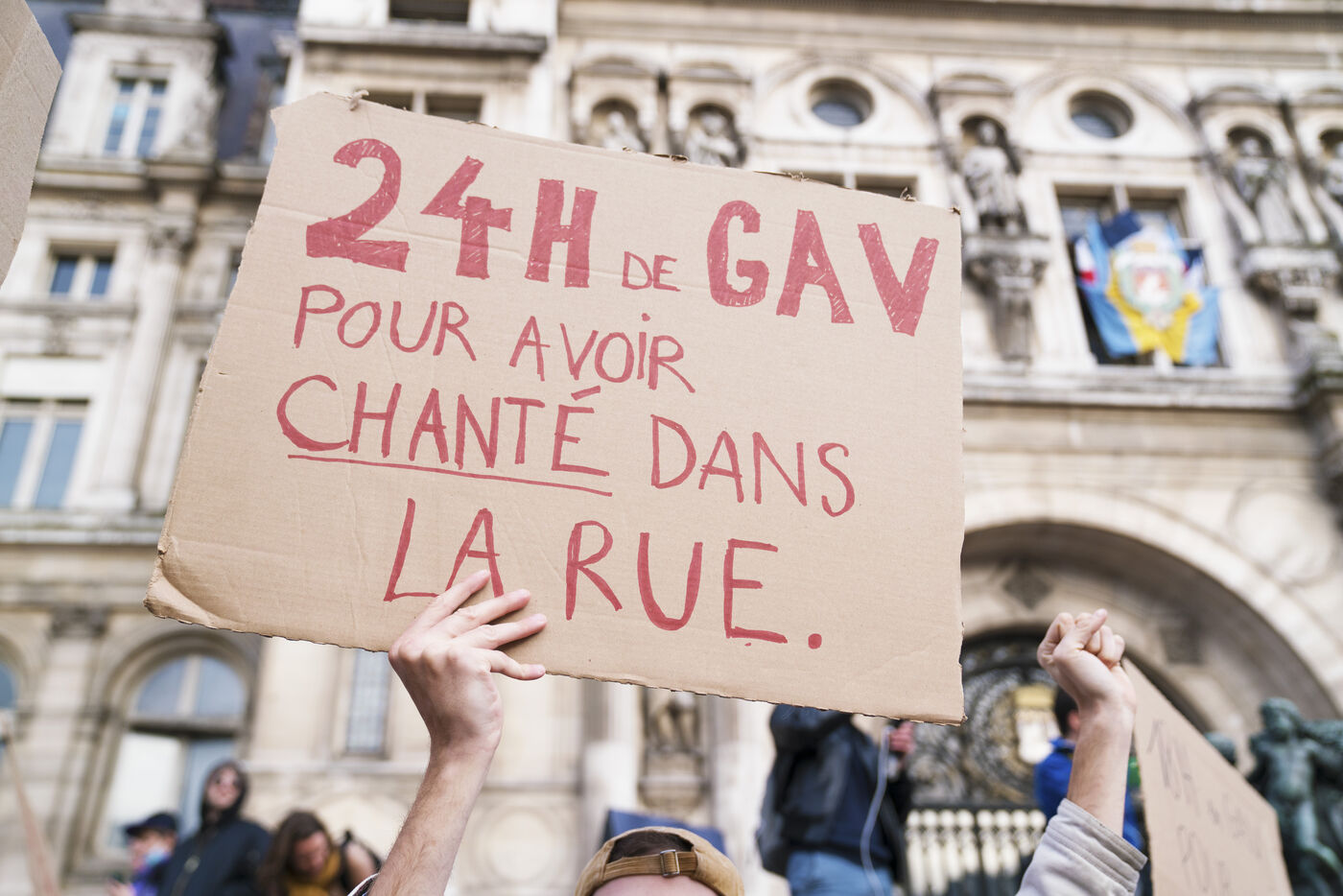 Rassemblement contre les violences policières à Paris, après que plus de 200 manifestants aient été blessés à Sainte-Soline, le samedi 25 mars. Le rassemblement a d'abord pris place à Hôtel de Ville en hommage aux victimes de violences policières, particulièrement aux deux personnes tombées dans le coma après la manifestation de Sainte-Soline contre les méga-bassines, et aux nombreux autres blessés. Ce jour-là, plus de 4000 grenades ont été tirées sur les manifestants par les forces de l'ordre. Une manifestation sauvage a ensuite traversé Paris. Jeudi 30 mars 2023.
