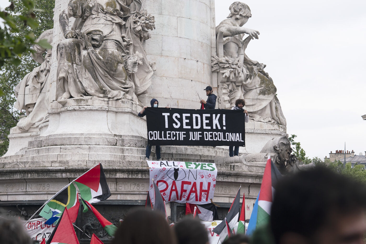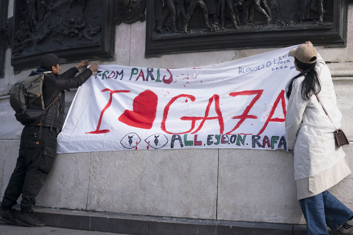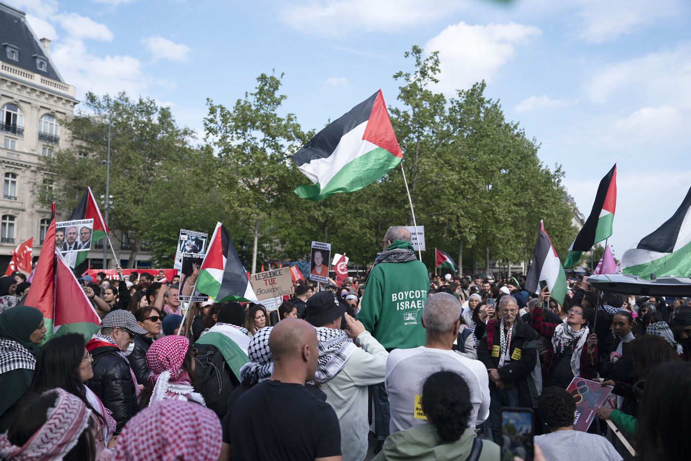 Gathering to denounce the massacre at Rafah and support the Palestinian people, Place de la République, Paris. May 7, 2024.
