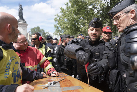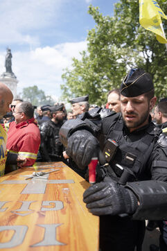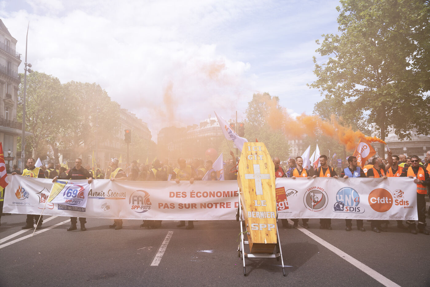 Firefighters' strike and demonstration between Place de la République and Nation, Paris, Thursday, May 16, 2024.