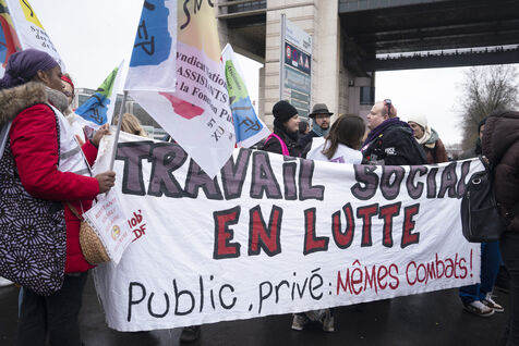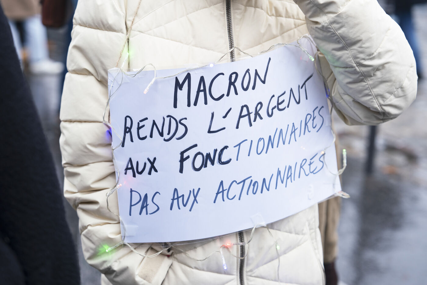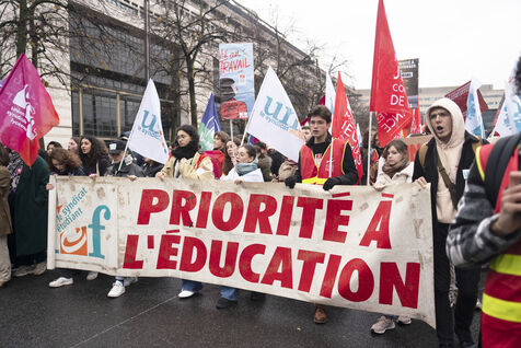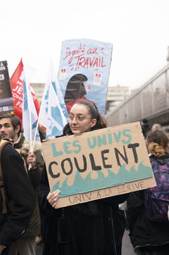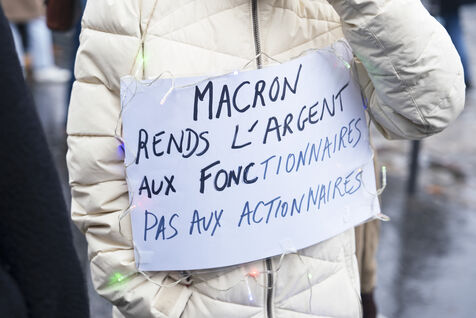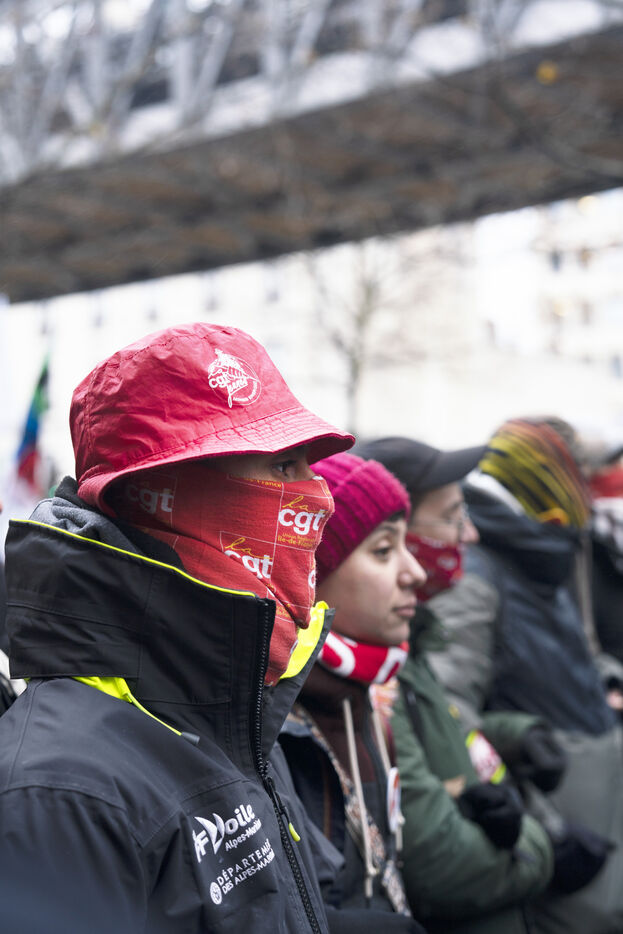 Grève générale mobilisant particulièrement le secteur de la fonction publique le 5 décembre 2024 à Paris. La manifestation parisienne est partie de Bercy pour rejoindre Place d'Italie.
