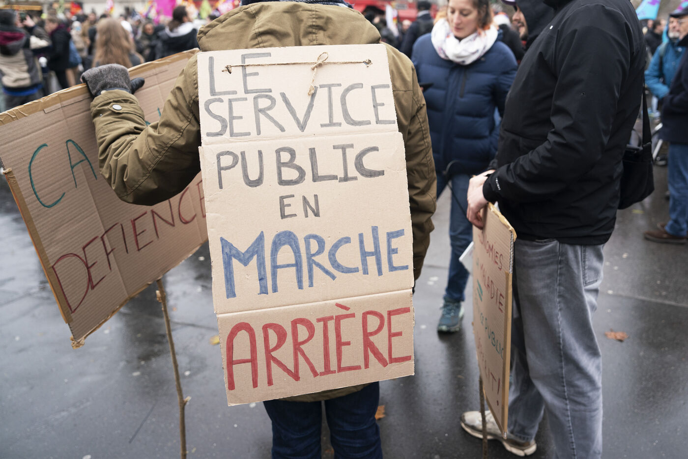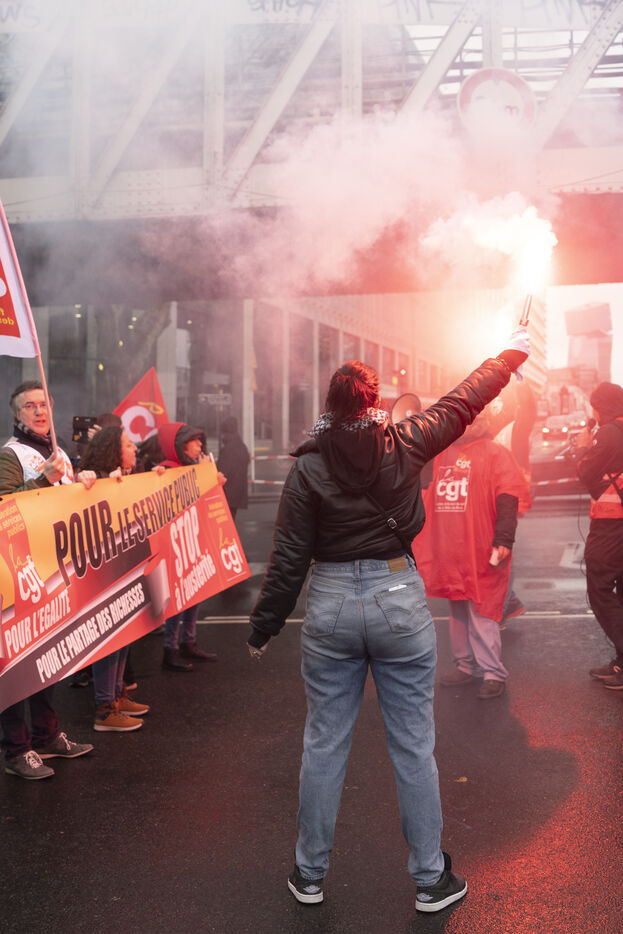General strike in Paris on December 5, 2024, particularly mobilizing the civil service sector. The Paris demonstration started at Bercy and ended at Place d'Italie.
