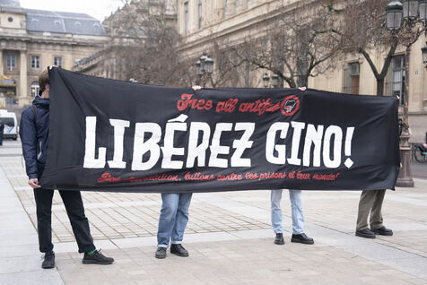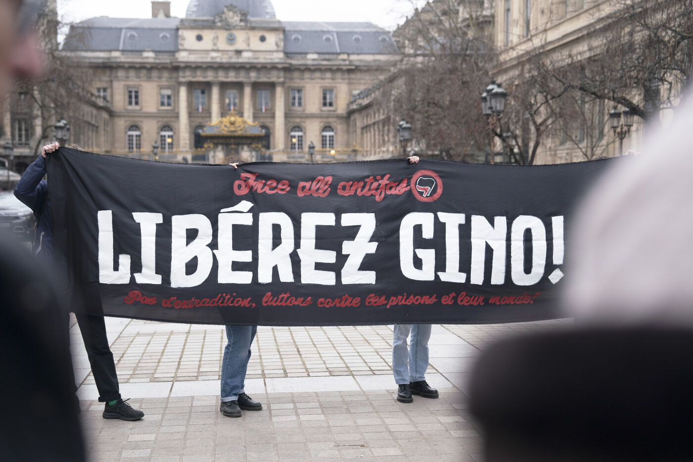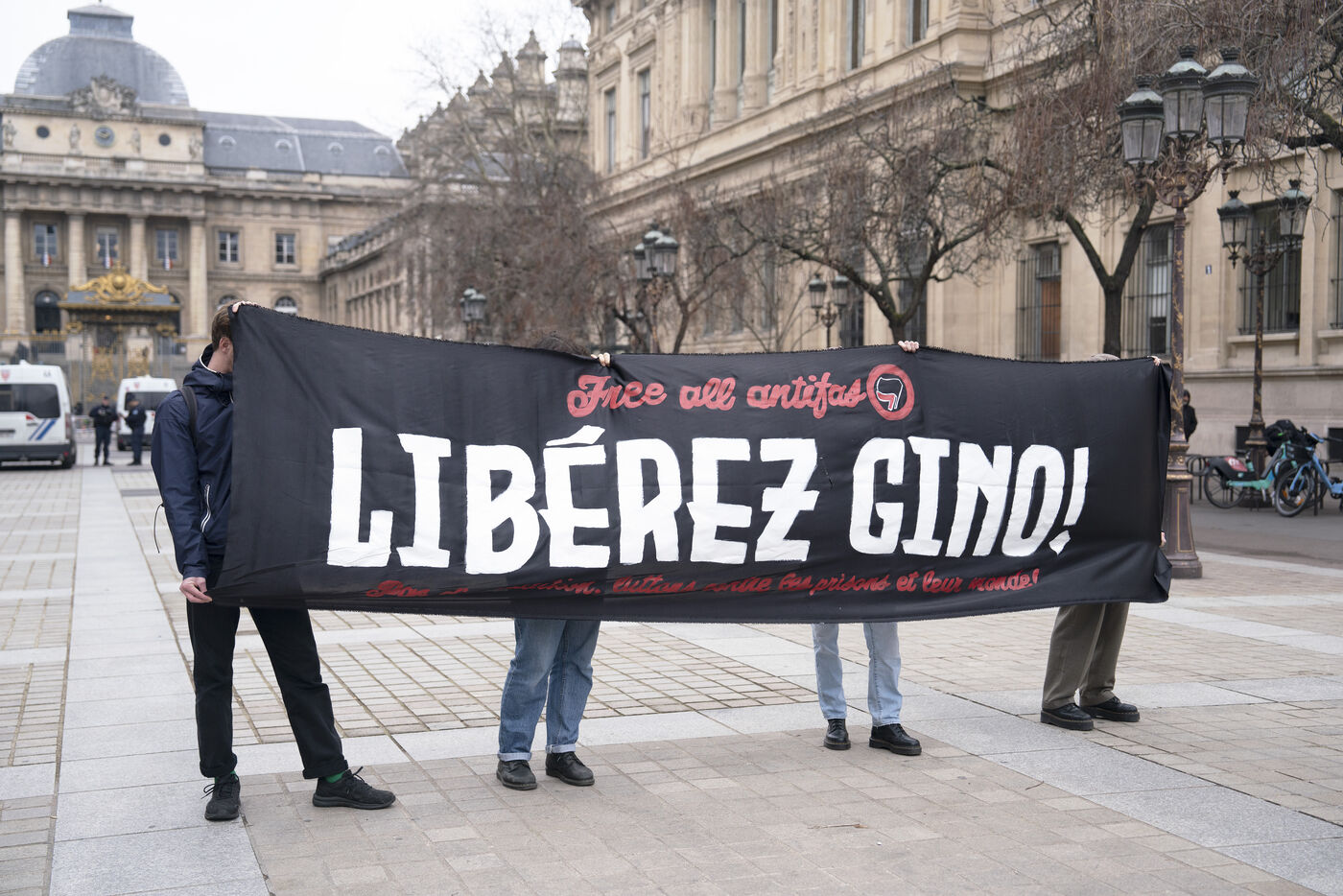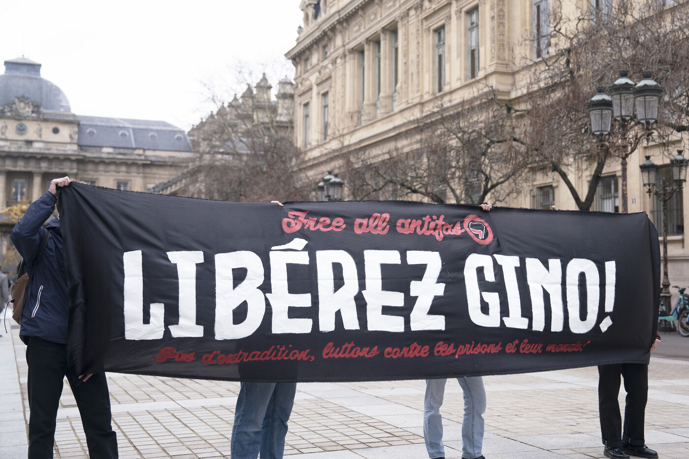 Rassemblement "Libérez Gino" en soutien au militant antifasciste à Paris