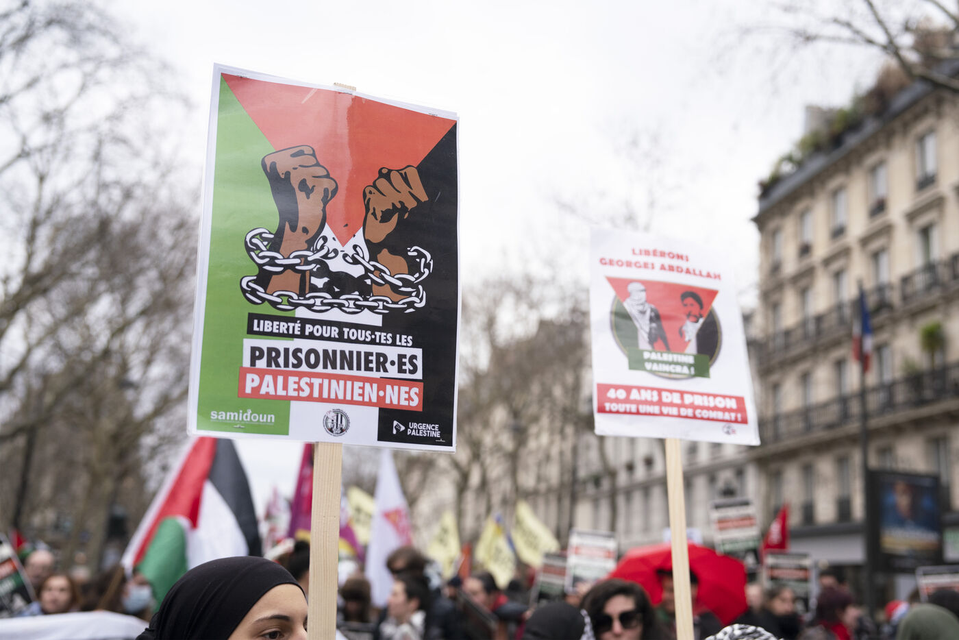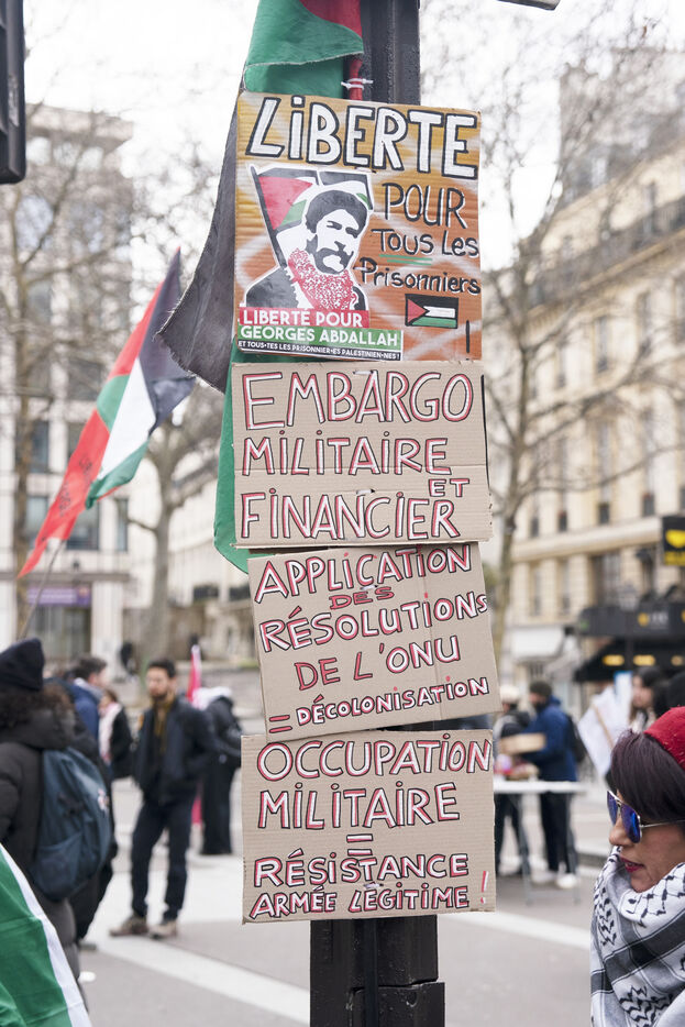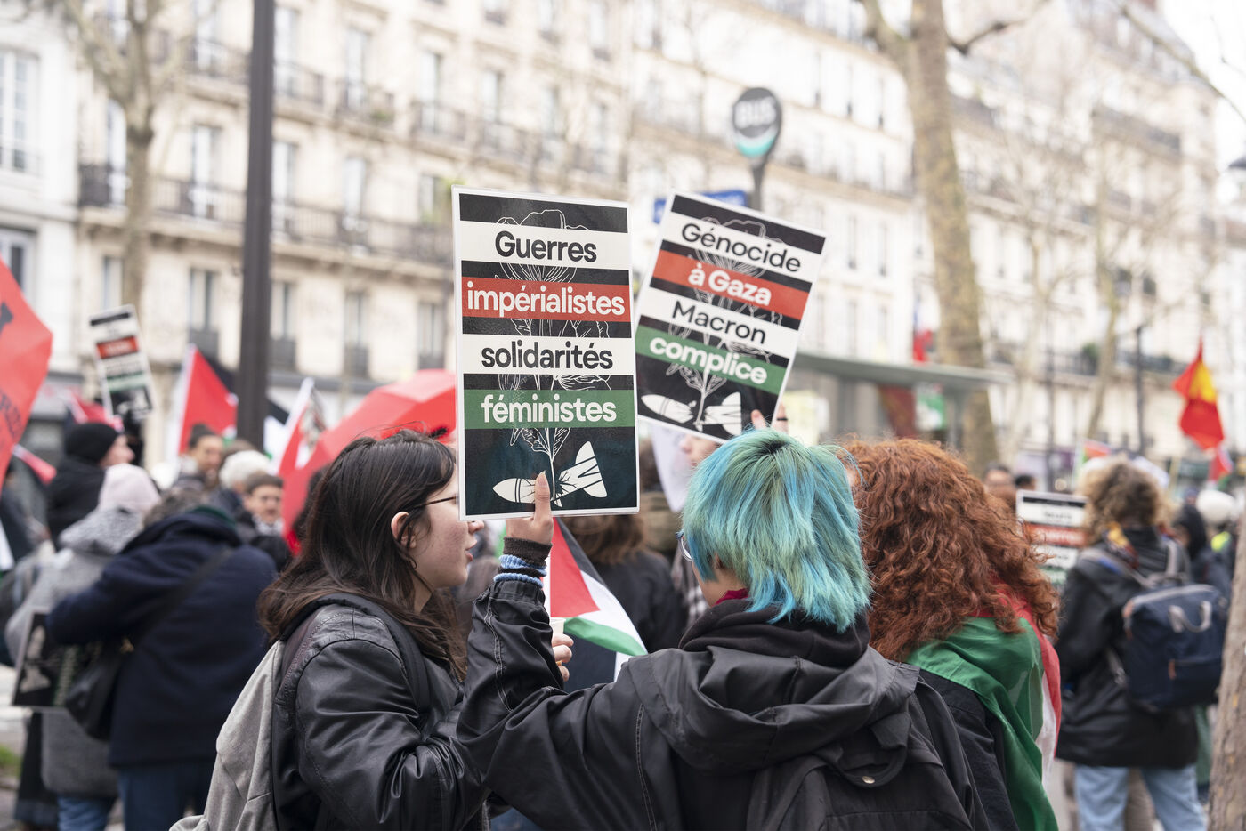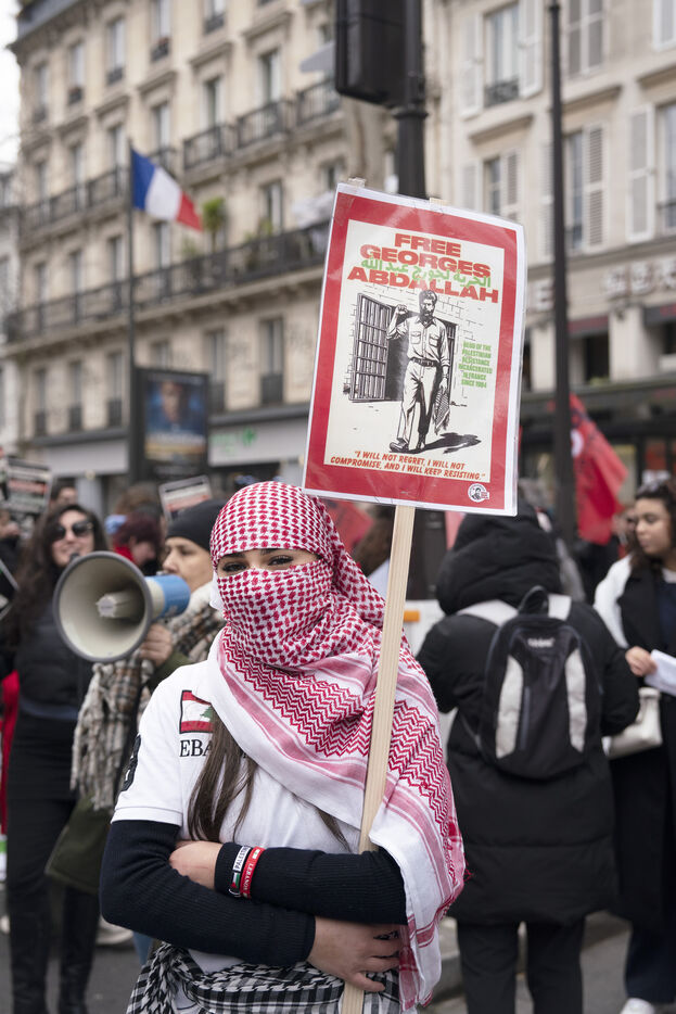 Manifestation féministe pour la fin du génocide en Palestine et pour la libération de Georges Abdallah à Paris