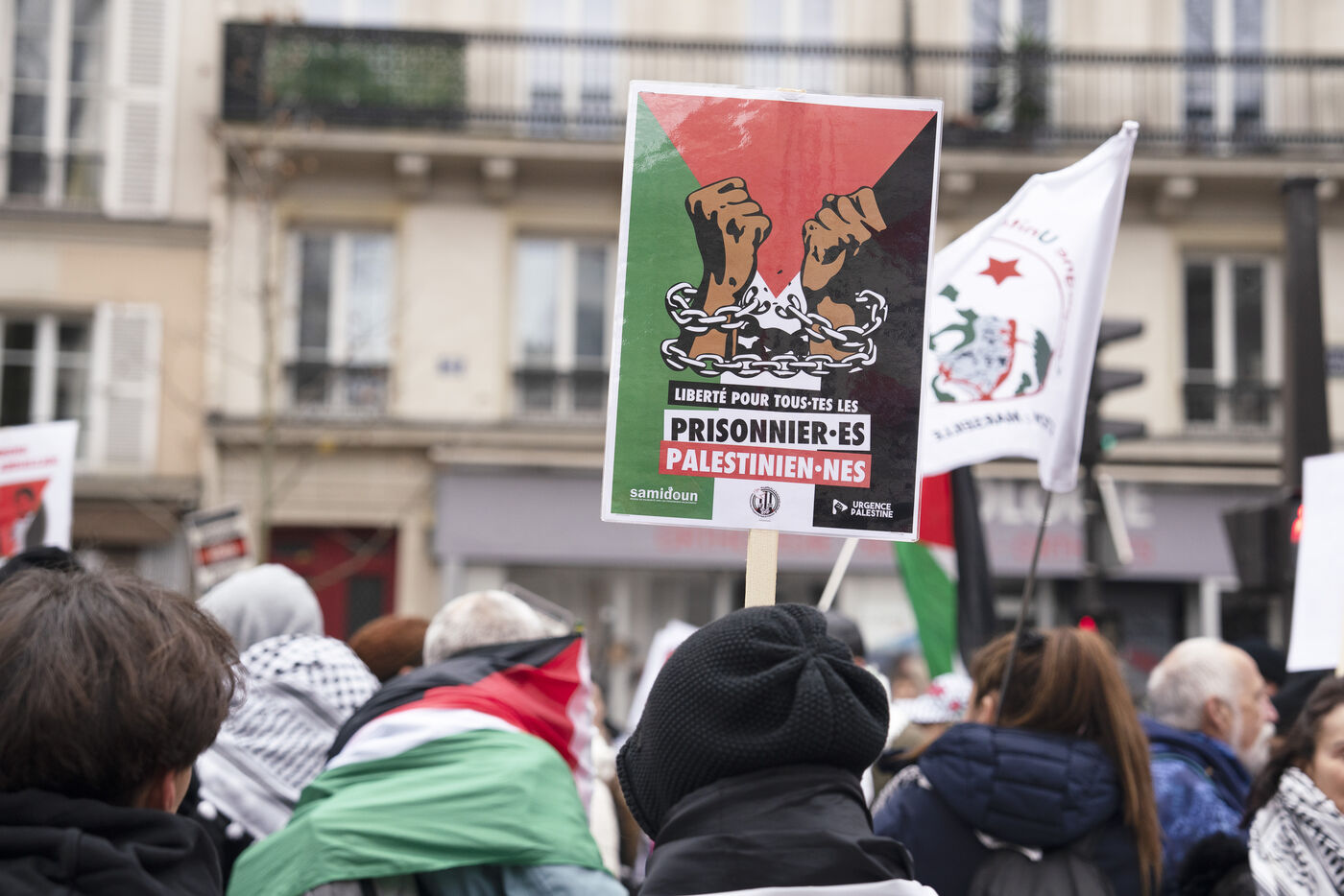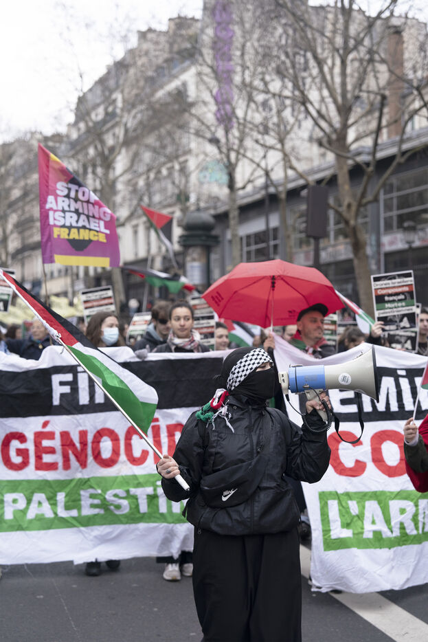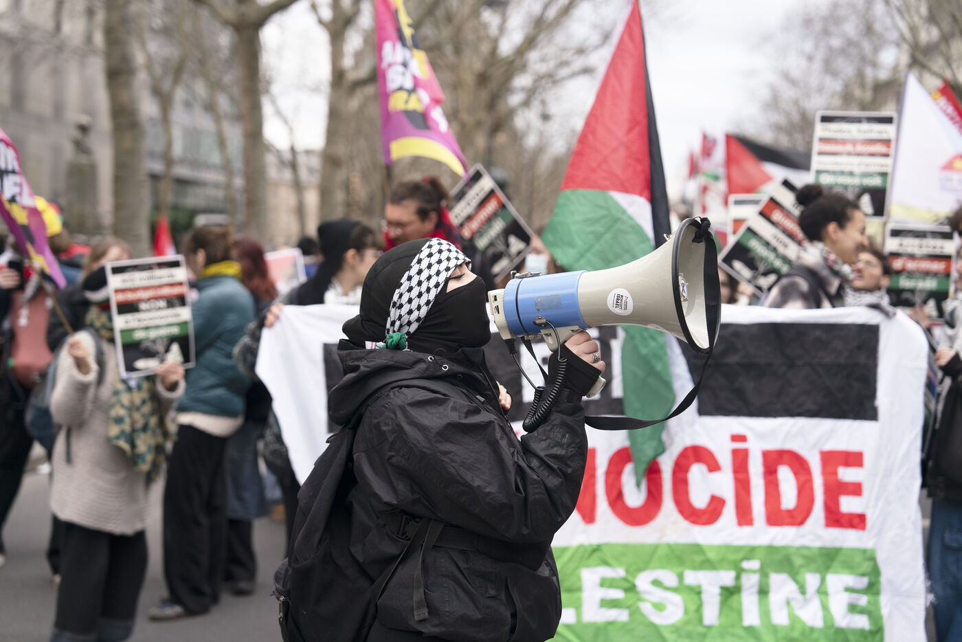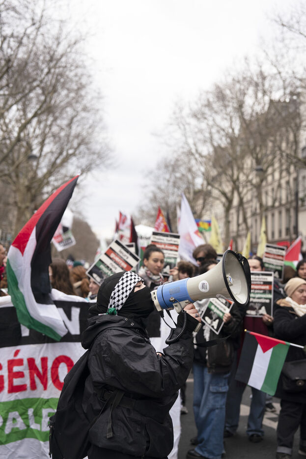 Manifestation féministe pour la fin du génocide en Palestine et pour la libération de Georges Abdallah à Paris