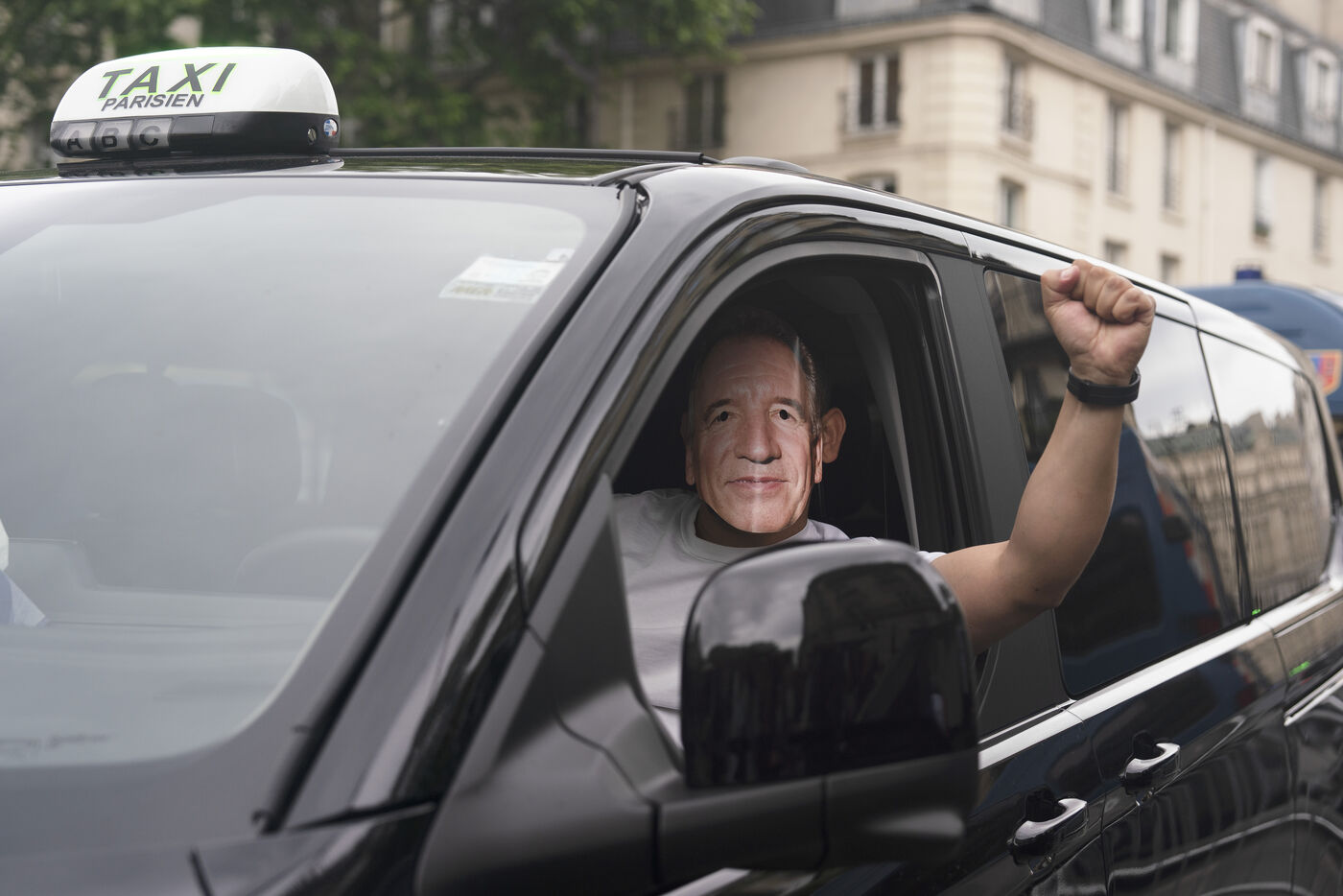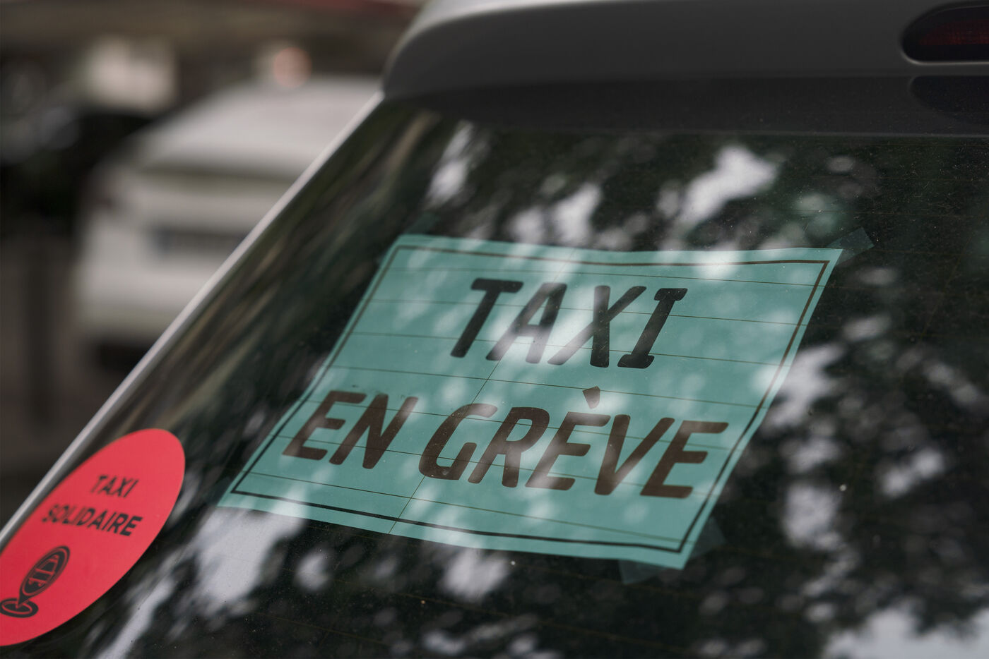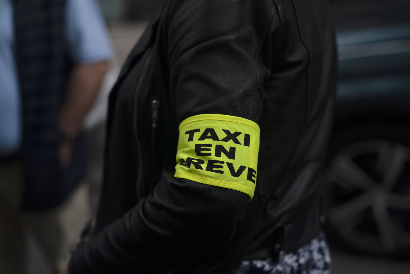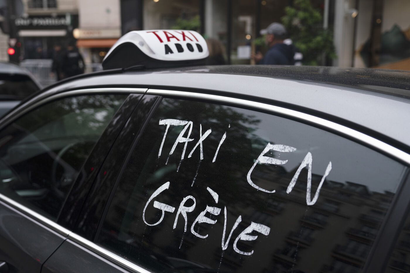 Cab strike: further blockade action by striking cab drivers in Paris, against proposed changes in the way the state funds medical transport services, near the Ministry of Transport, May 25, 2025.