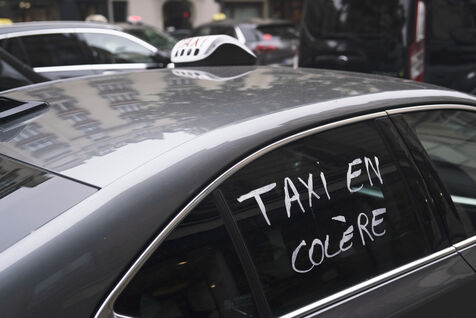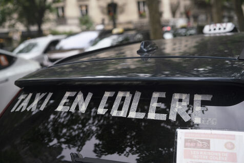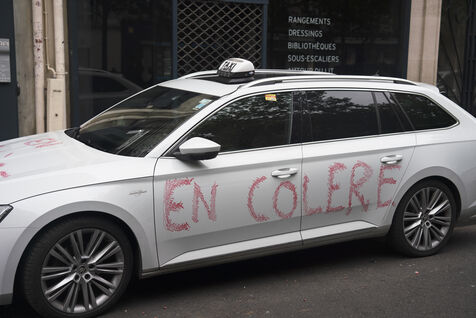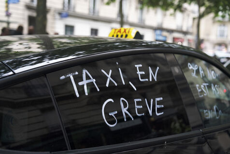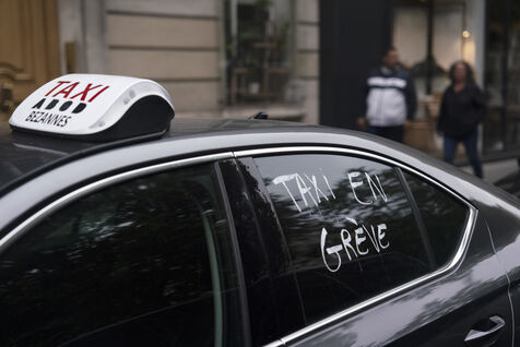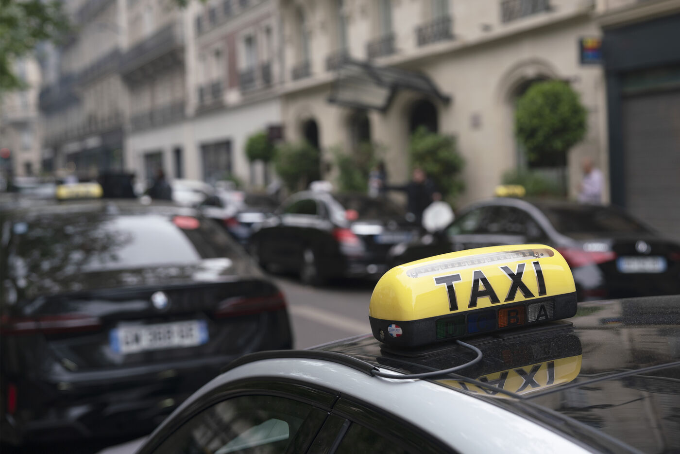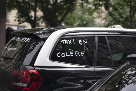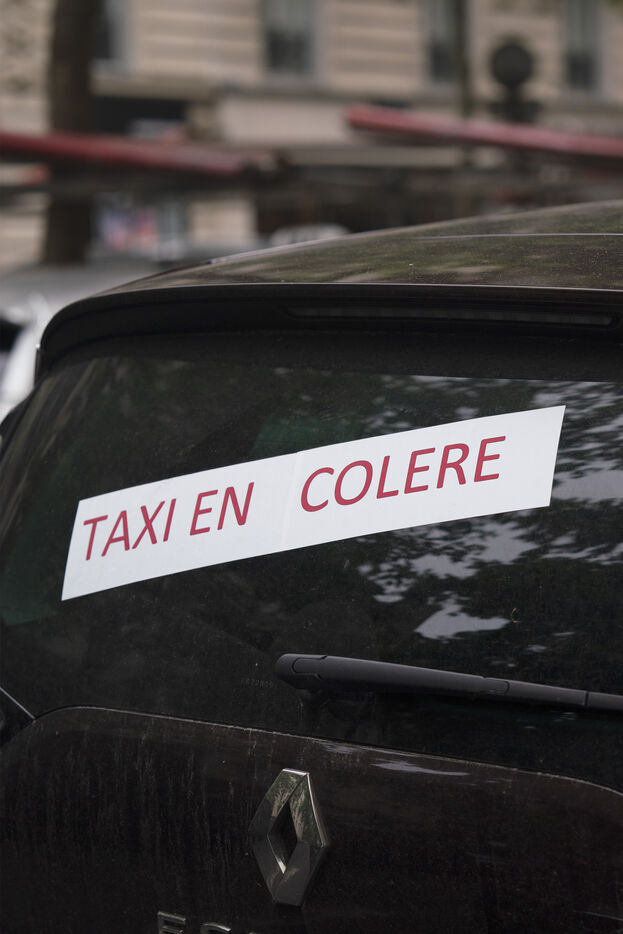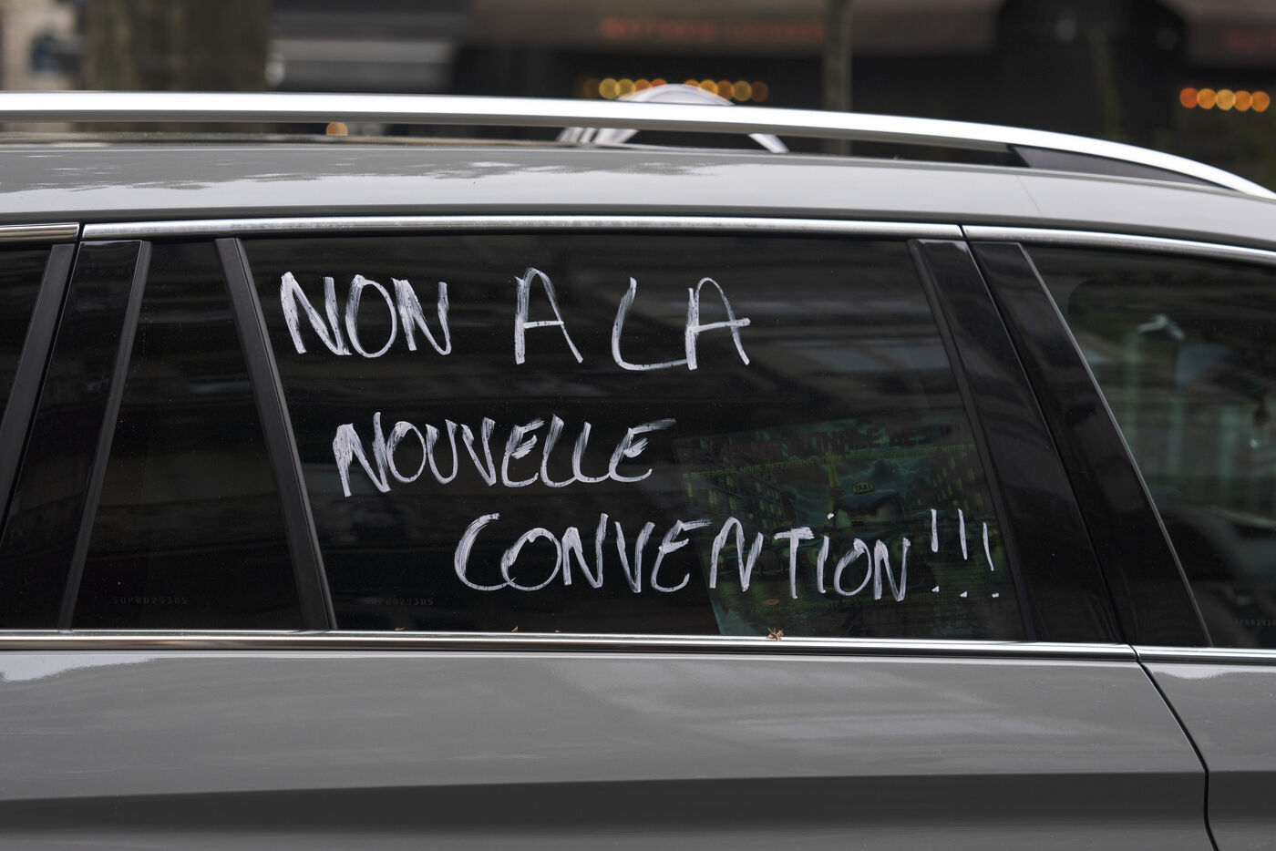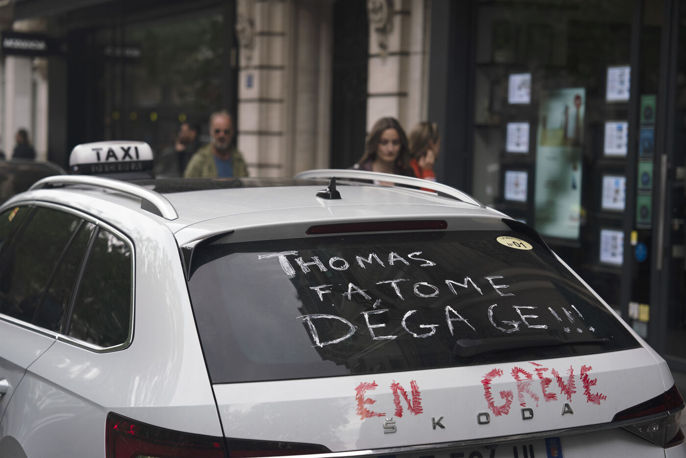 Cab strike: further blockade action by striking cab drivers in Paris, against proposed changes in the way the state funds medical transport services, near the Ministry of Transport, May 25, 2025.