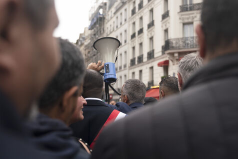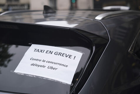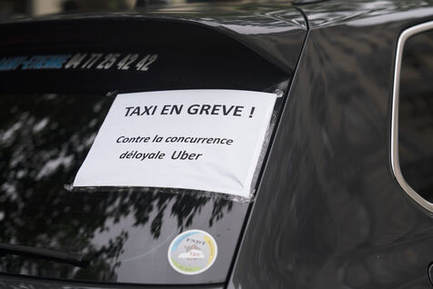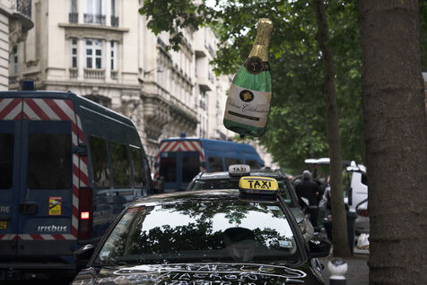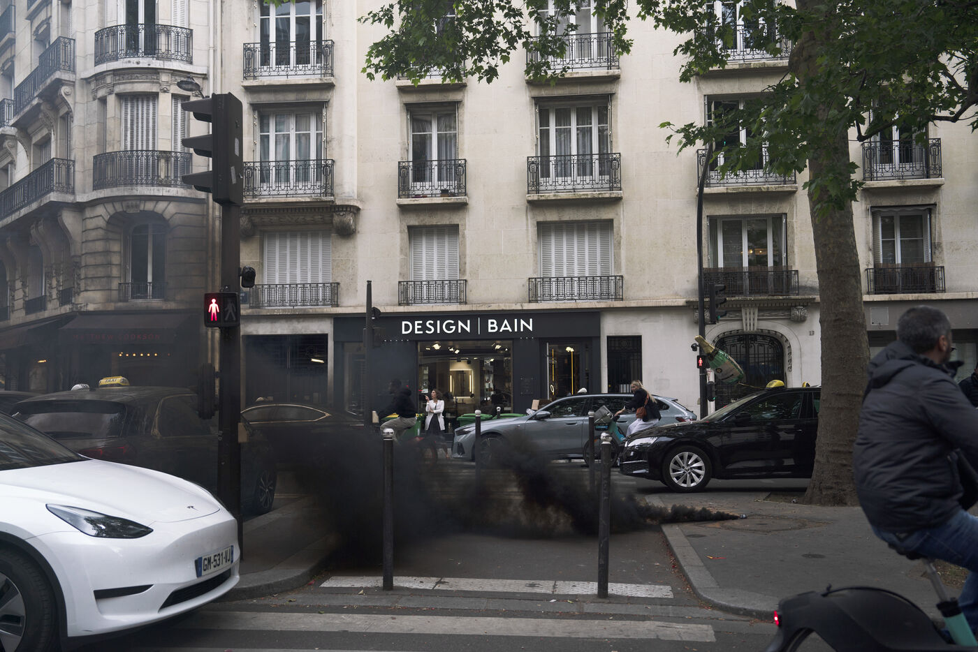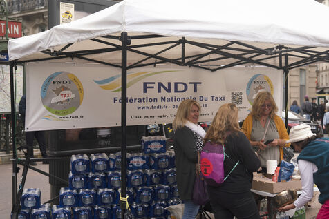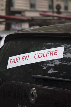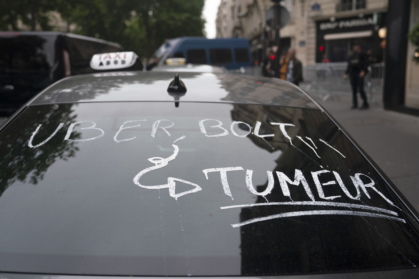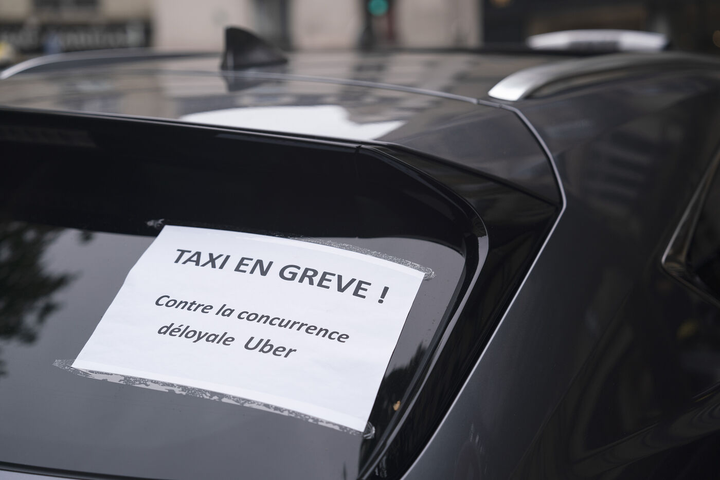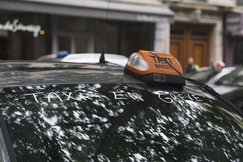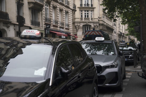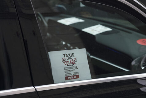 Cab strike: further blockade action by striking cab drivers in Paris, against proposed changes in the way the state funds medical transport services, near the Ministry of Transport, May 25, 2025.