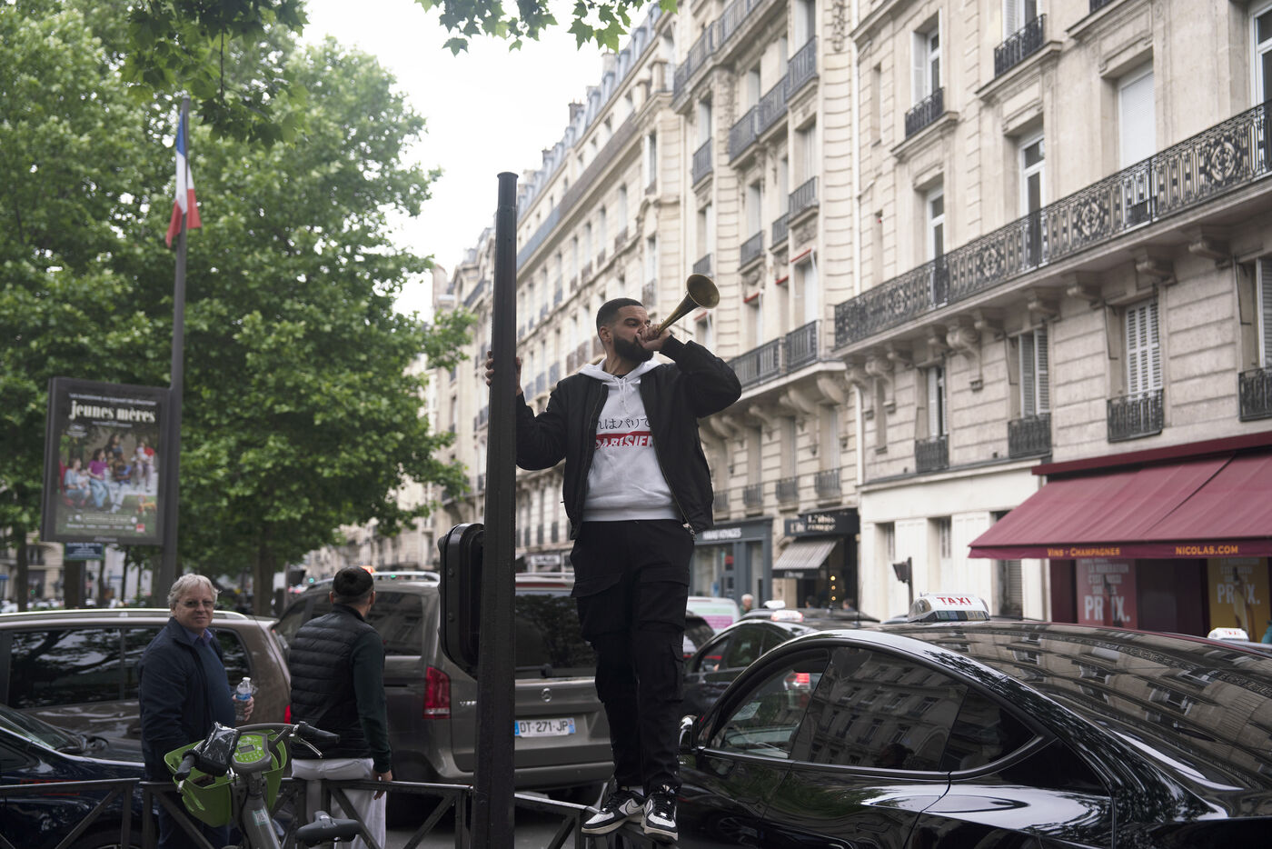 Grève des taxis : nouvelle action de blocage des chauffeurs de taxis en grève à Paris, contre les changements proposés dans la manière dont l'Etat finance les services de transport médical, près du ministère des transports, le 25 mai 2025.