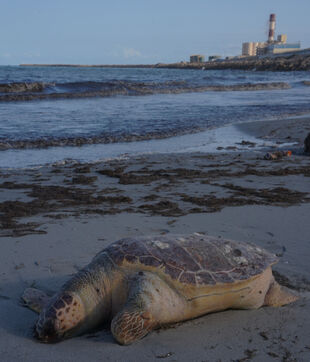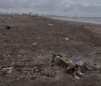 Gabès (Tunisie) : Usines du Groupe Chimique Tunisien dans la ville de Gabès, près du quartier de Chatt Essalem. Ces usines polluent l'environnement, les eaux et les terres. Les produits chimiques qui s'en dégagent ont des conséquences sur la santé des habitants et la vie de la faune et de la flore locales. Novembre 2025, à Gabès, Tunisie.