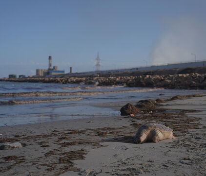 Gabès (Tunisia): Factories belonging to the Tunisian Chemical Group in the city of Gabès, near the Chatt Essalem neighborhood. These factories pollute the environment, water, and land. The chemicals they release have an impact on the health of residents and the life of local flora and fauna. November 2025, in Gabès, Tunisia.