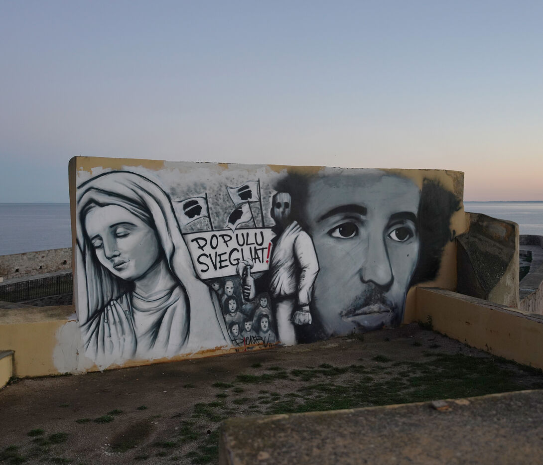 Corsica: Mural in tribute to Yvan Colonna in the citadel of Bastia. December 28, 2025.