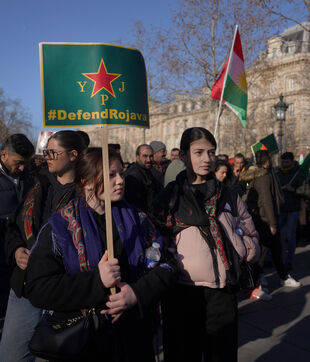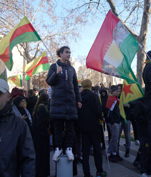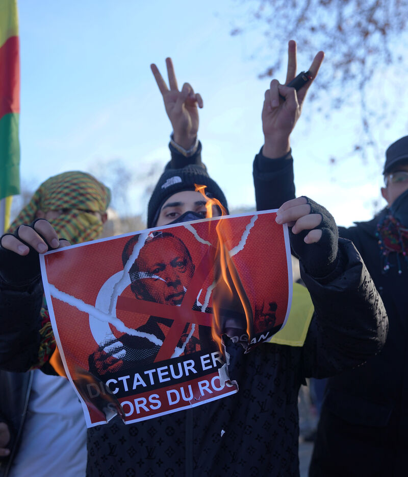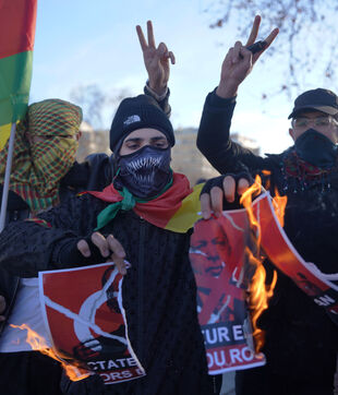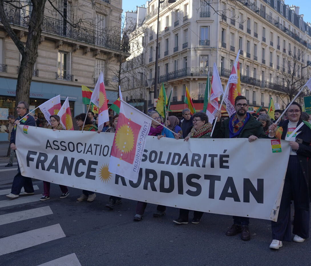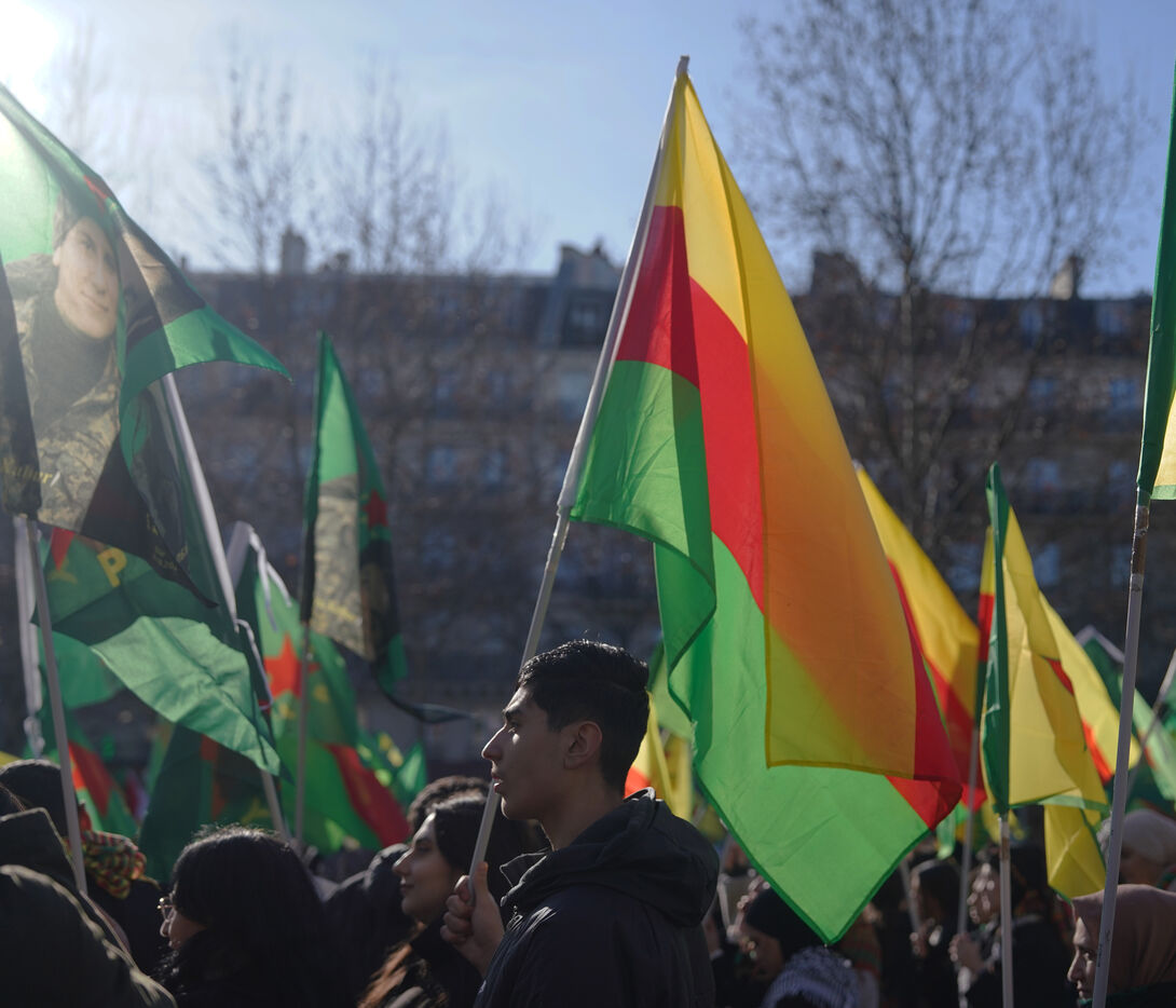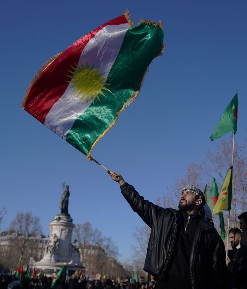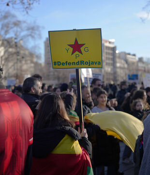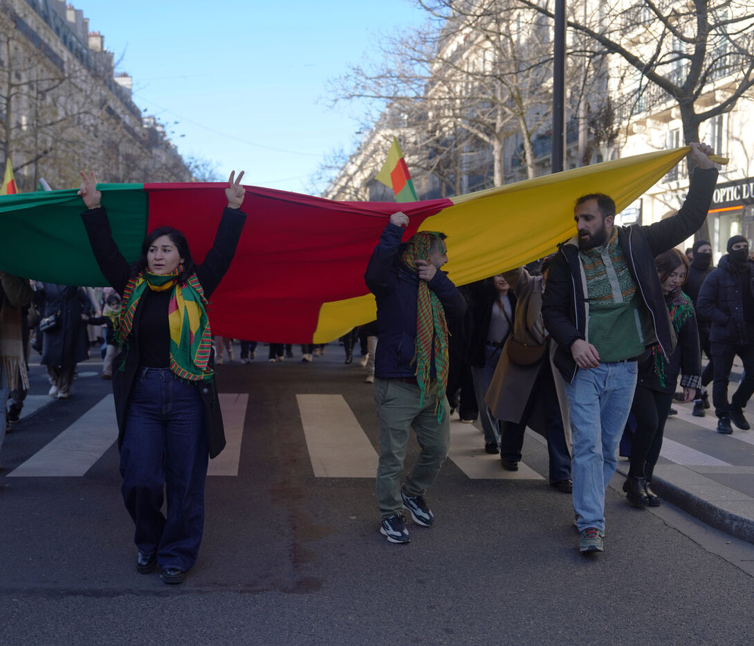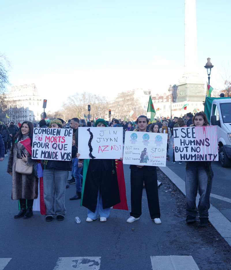 Demonstration in support of Rojava in Paris, threatened by attacks from the army of Ahmed al Charaa, a former jihadist who became interim president at the end of 2023 after the fall of Bashar al Assad's dictatorship in Syria. January 24, 2026.