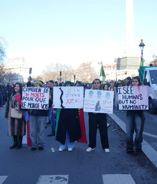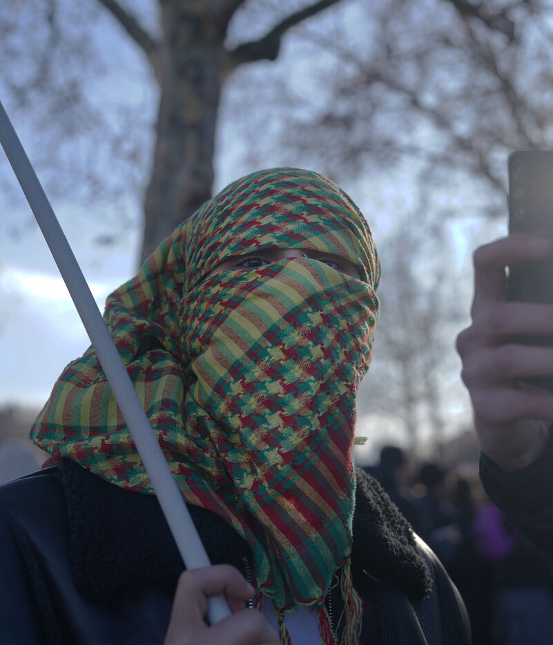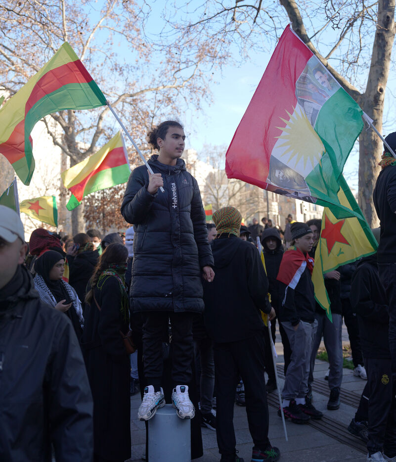Manifestation en soutien au Rojava à Paris, menacé par les assauts de l’armée d’Ahmed al Charaa, ex-djihadiste devenu président par intérim fin 2023 après la chute de la dictature de Bachar al Assad en Syrie. Le 24 janvier 2026.