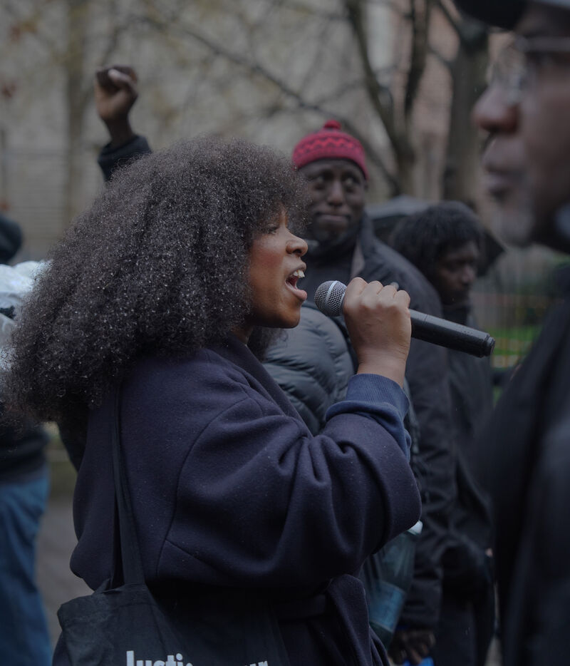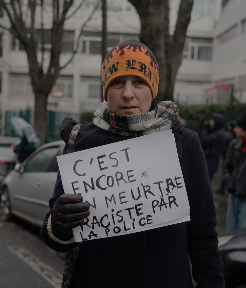 Marche en hommage à El Hacen Diarra, tué par la police dans la nuit du 14 au 15 janvier 2026, au commissariat du 20ème arrondissement de Paris. Le 25 janvier 2026, à Paris.