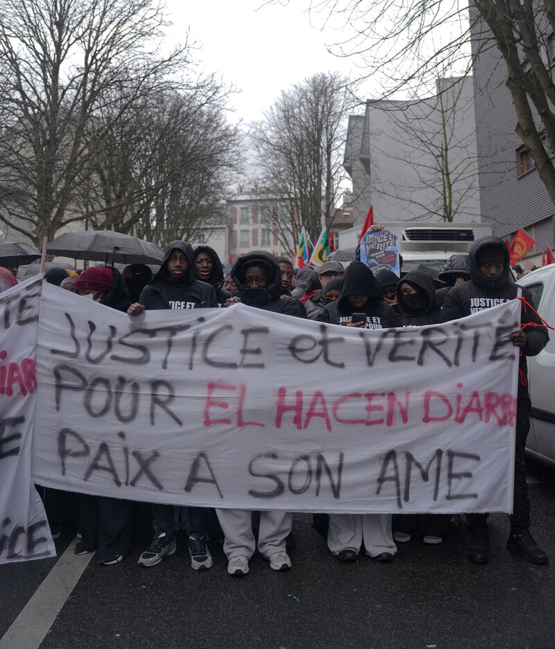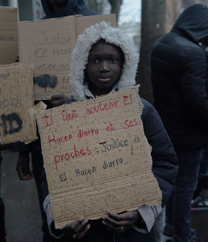 March in tribute to El Hacen Diarra, killed by police on the night of January 14-15, 2026, at the police station in Paris's 20th arrondissement. January 25, 2026, in Paris.