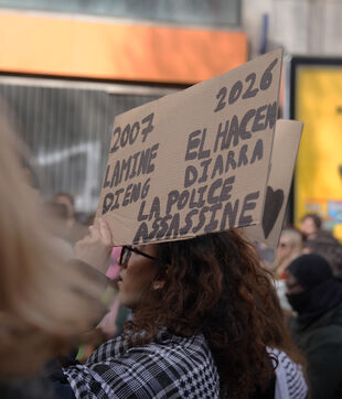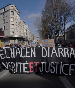 March in tribute to El Hacen Diarra, killed by police on the night of January 14-15, 2026, at the police station in Paris's 20th arrondissement.