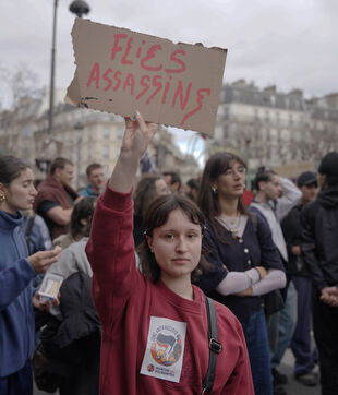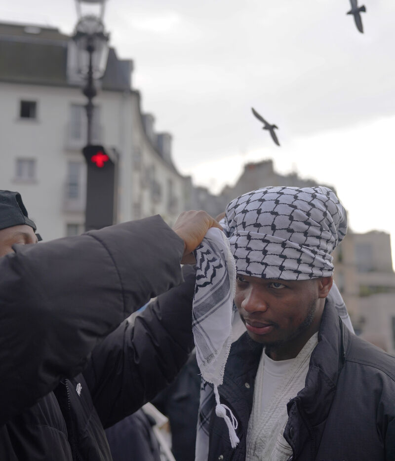 Marche en hommage à El Hacen Diarra, tué par la police dans la nuit du 14 au 15 janvier 2026, au commissariat du 20e arrondissement de Paris.