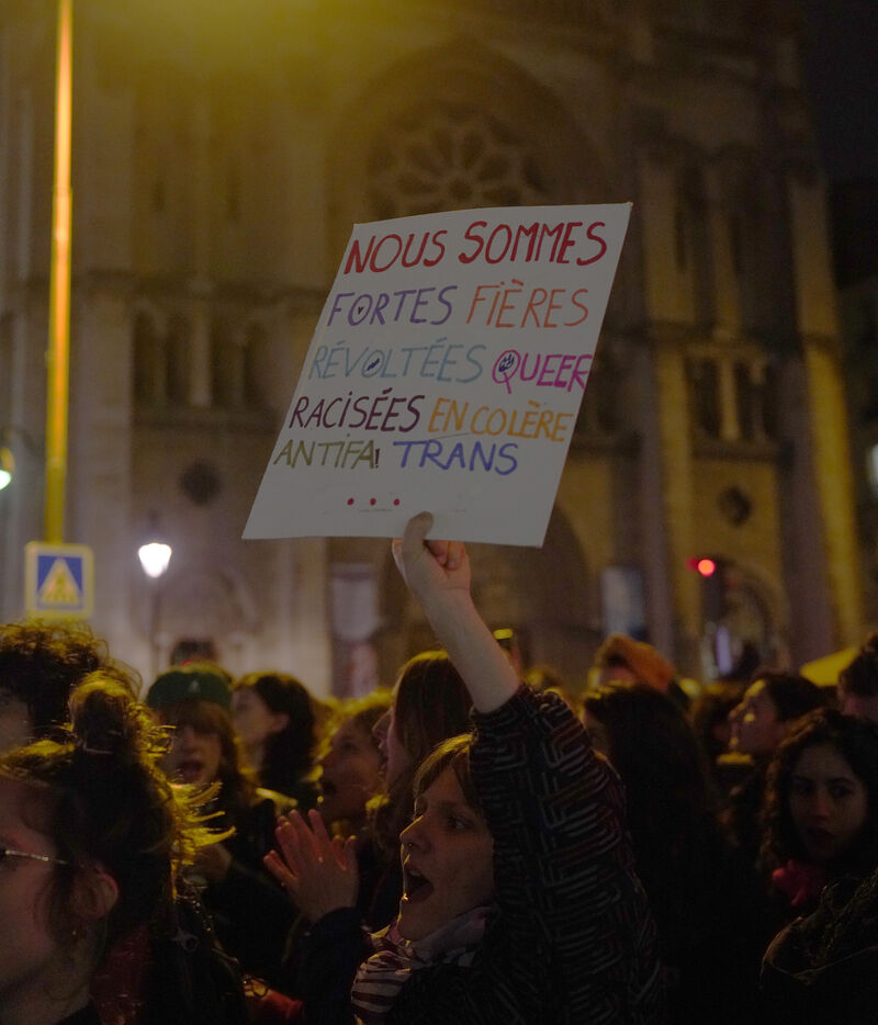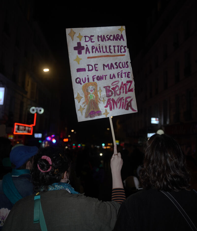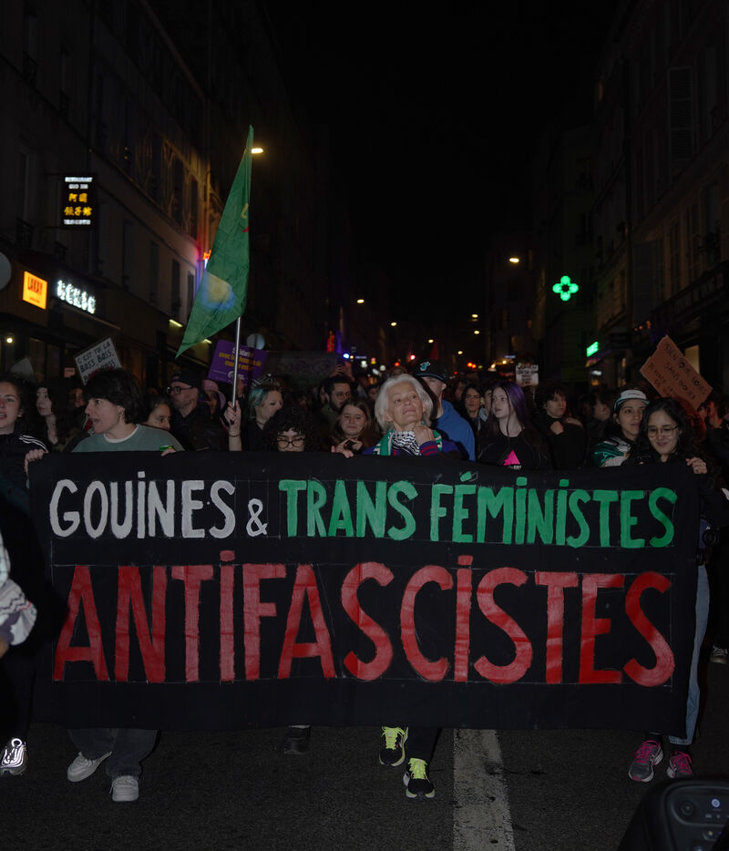 Radical feminist and anti-fascist night march against sexist and sexual violence. March 7, 2026, the eve of the big demonstration on March 8, between Place des Fêtes and République.