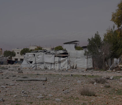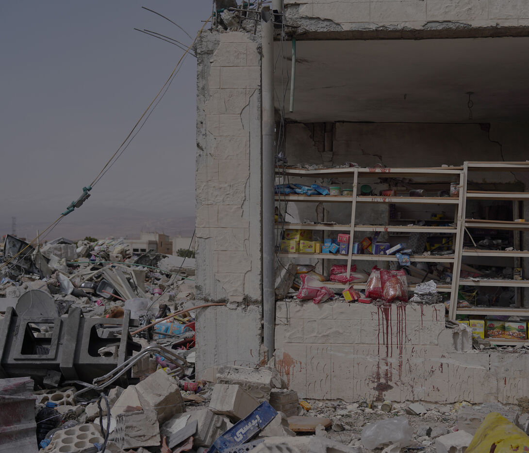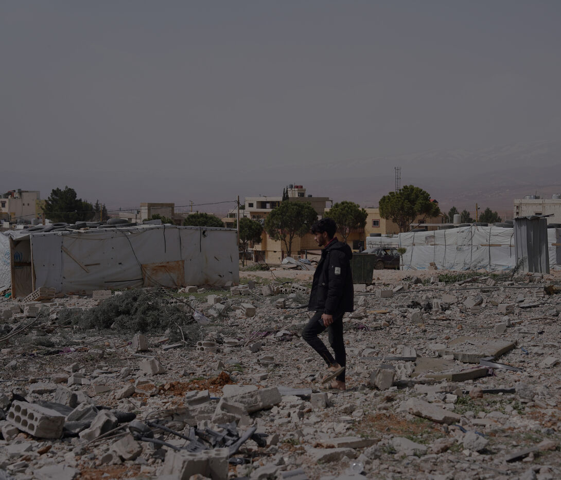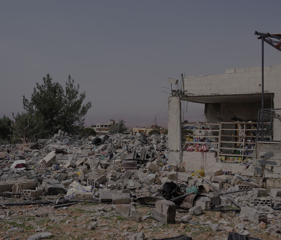 Dégâts causes par une frappe israélienne à Chaat, tout près d'un camp de réfugiés syriens. Le 12 mars 2026.
