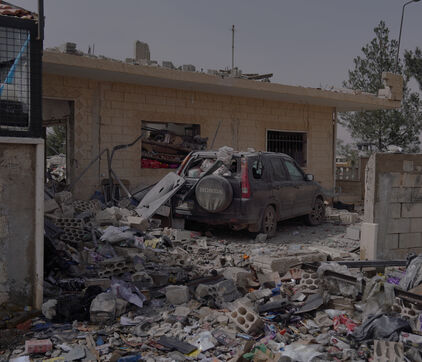Damage caused by an Israeli strike in Chaat, close to a Syrian refugee camp. March 12, 2026.