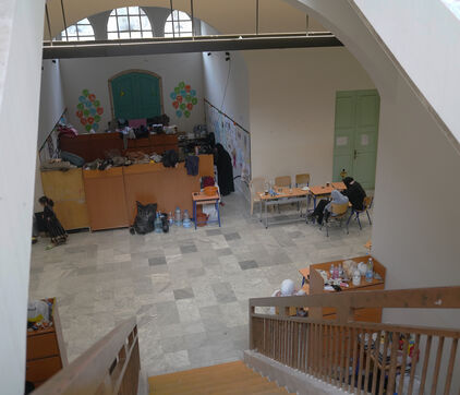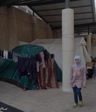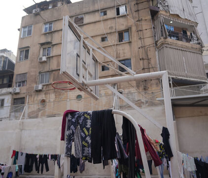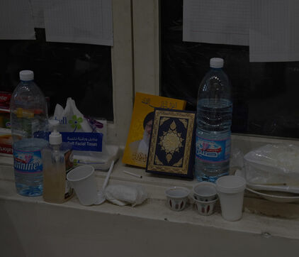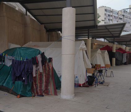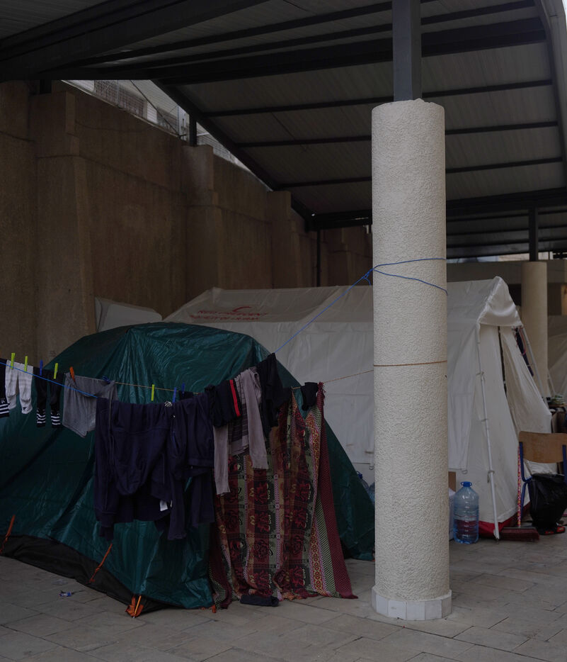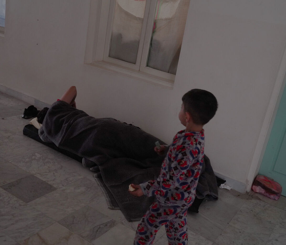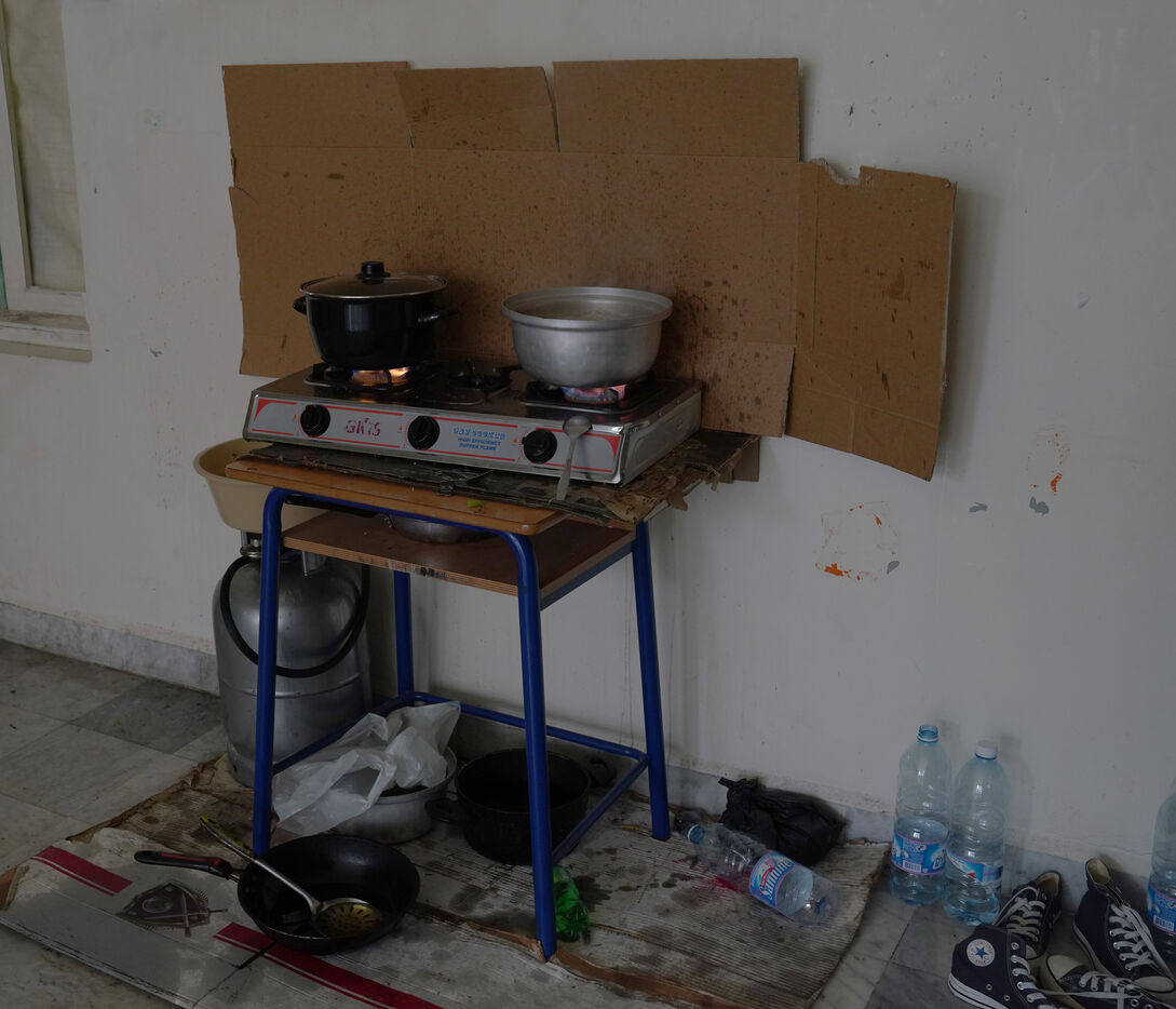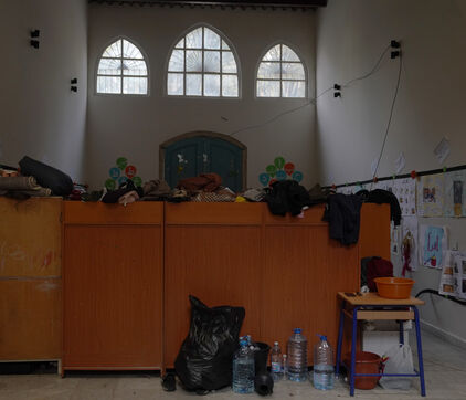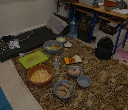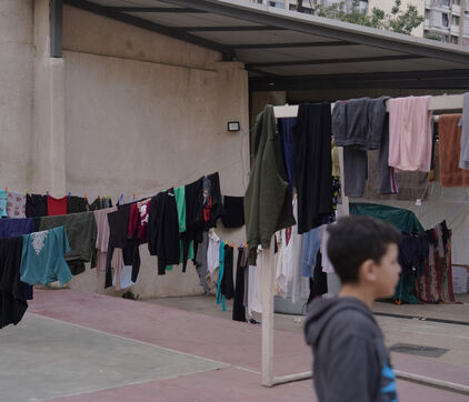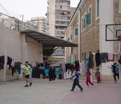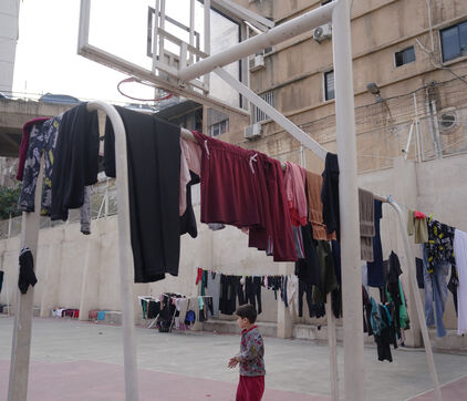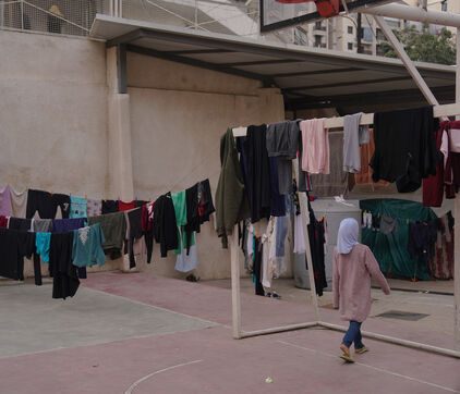 École Hassan Khaled à Beyrouth aménagée en centre d'accueil pour les personnes déplacées. Ici, les personnes qui ont dû quitter leurs maisons ont accès à de la nourriture, de l'eau, l'électricité, des couvertures et des tentes.