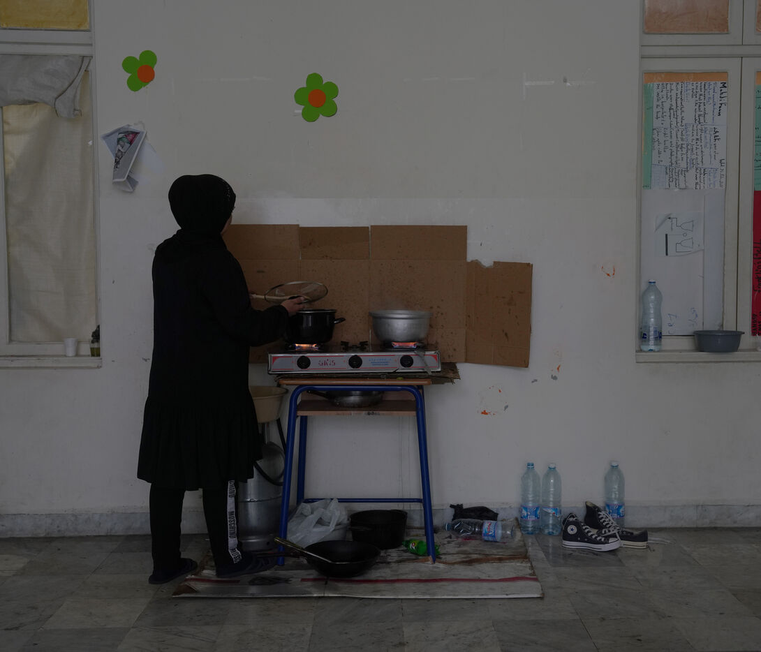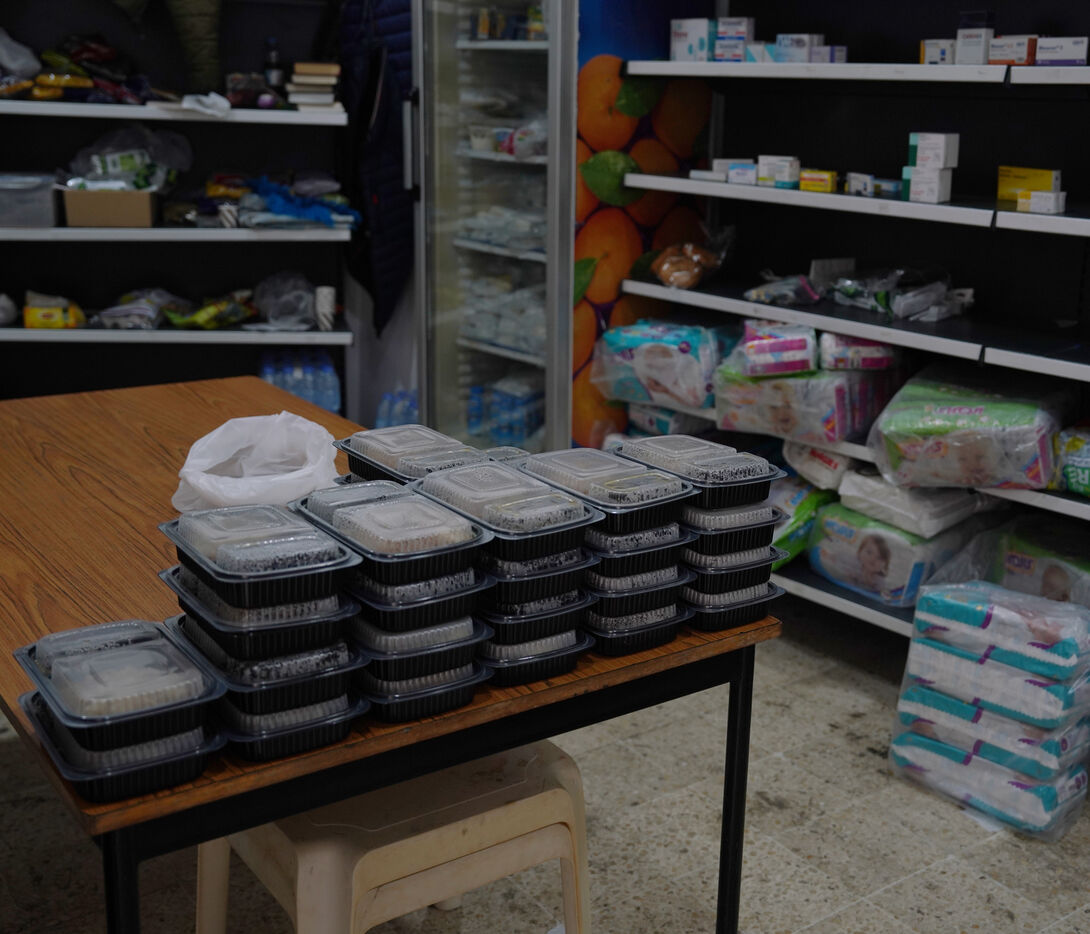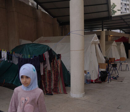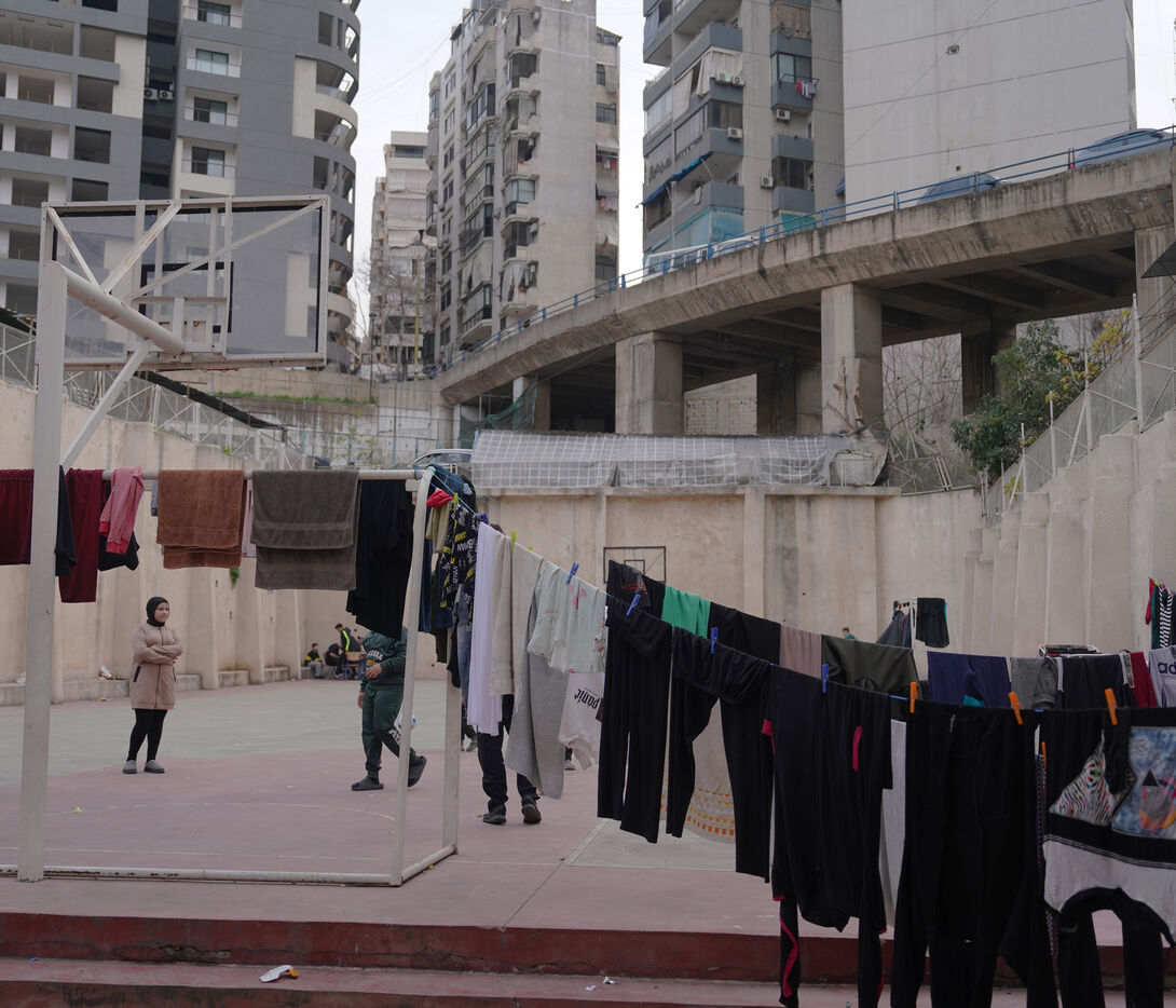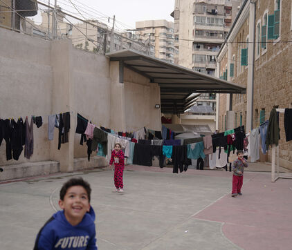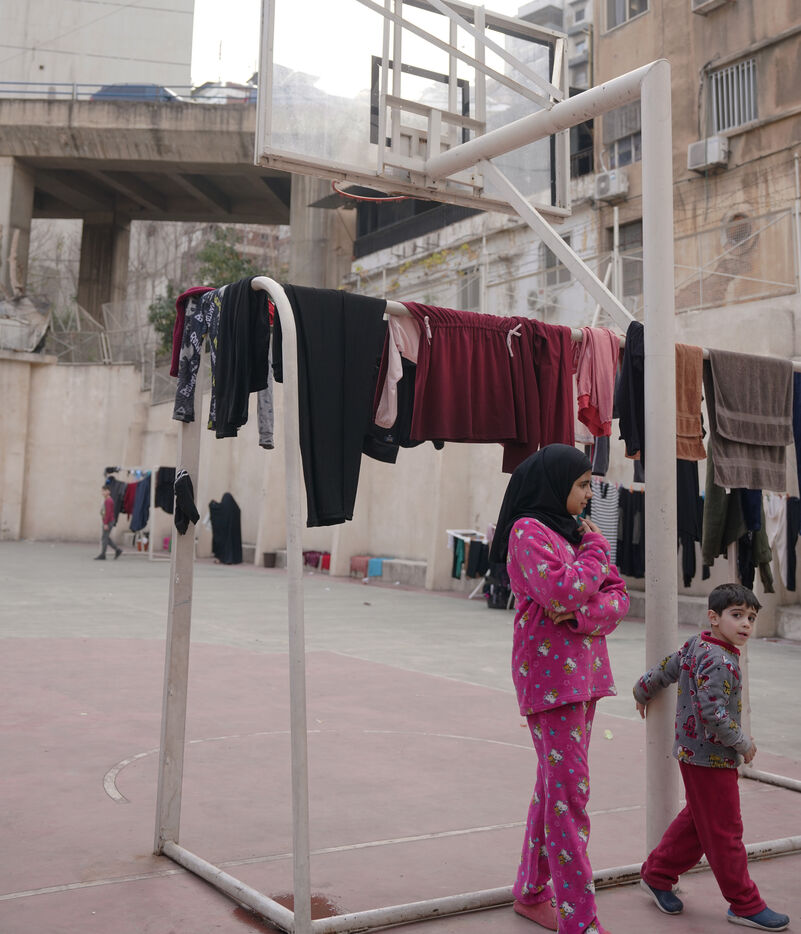 The Hassan Khaled School in Beirut has been converted into a shelter for displaced people. Here, people who have had to leave their homes have access to food, water, electricity, blankets, and tents.
