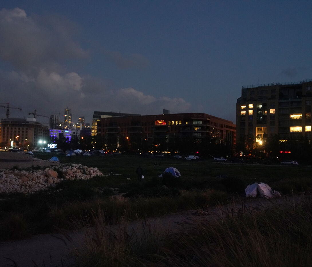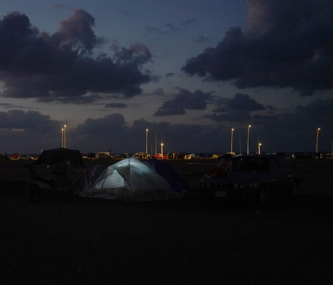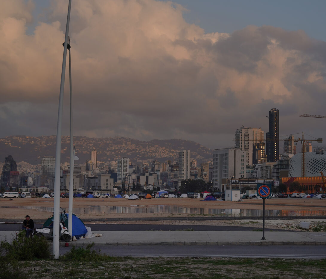 On the Beirut waterfront, many families displaced by Israeli bombing in Lebanon are living in tents. March 16, 2026.