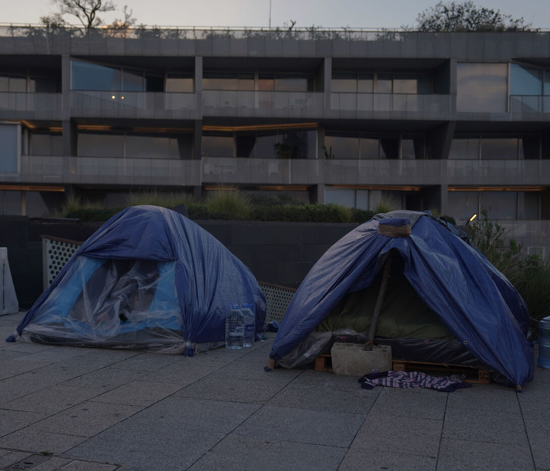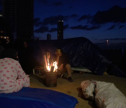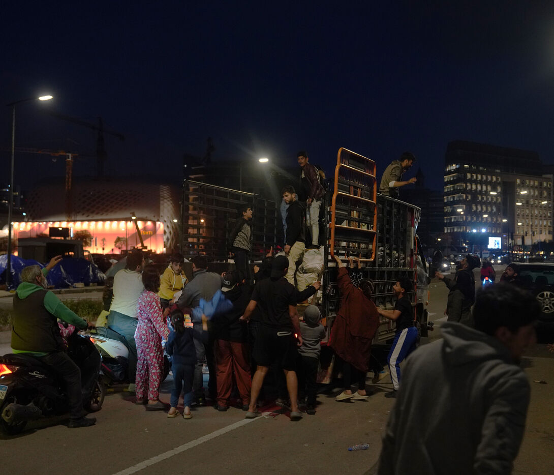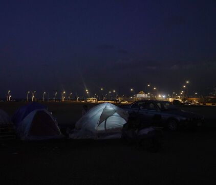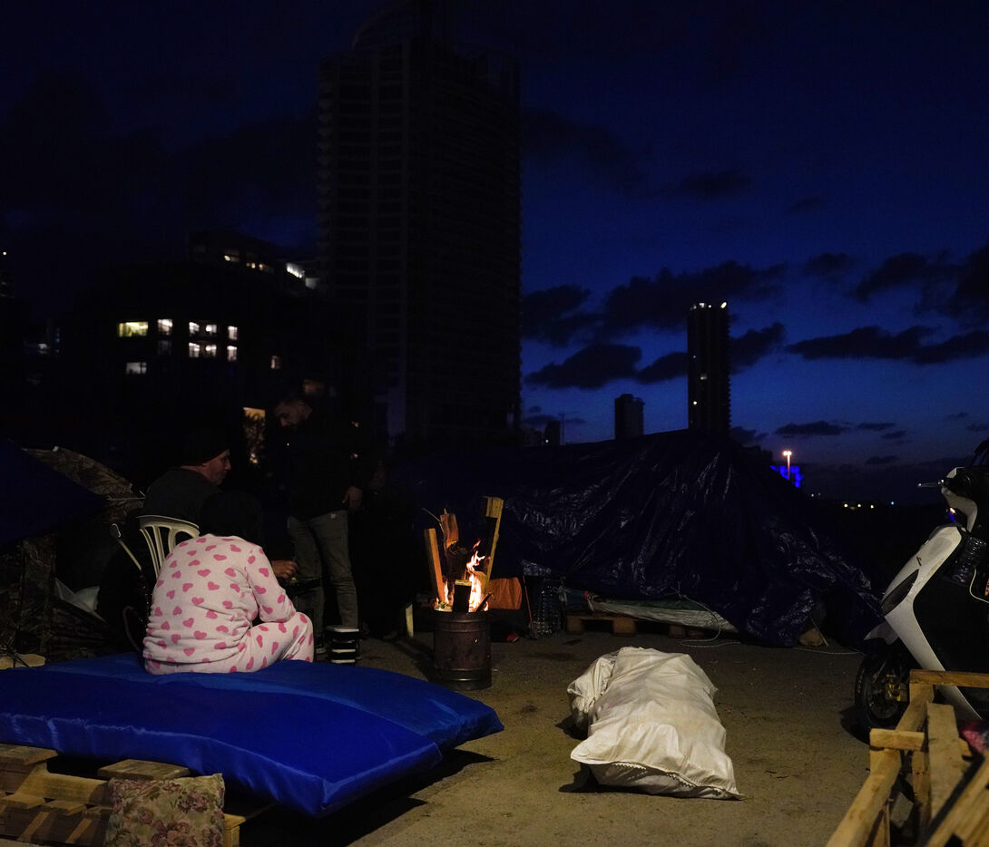On the Beirut waterfront, many families displaced by Israeli bombing in Lebanon are living in tents. March 16, 2026.