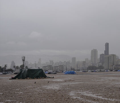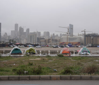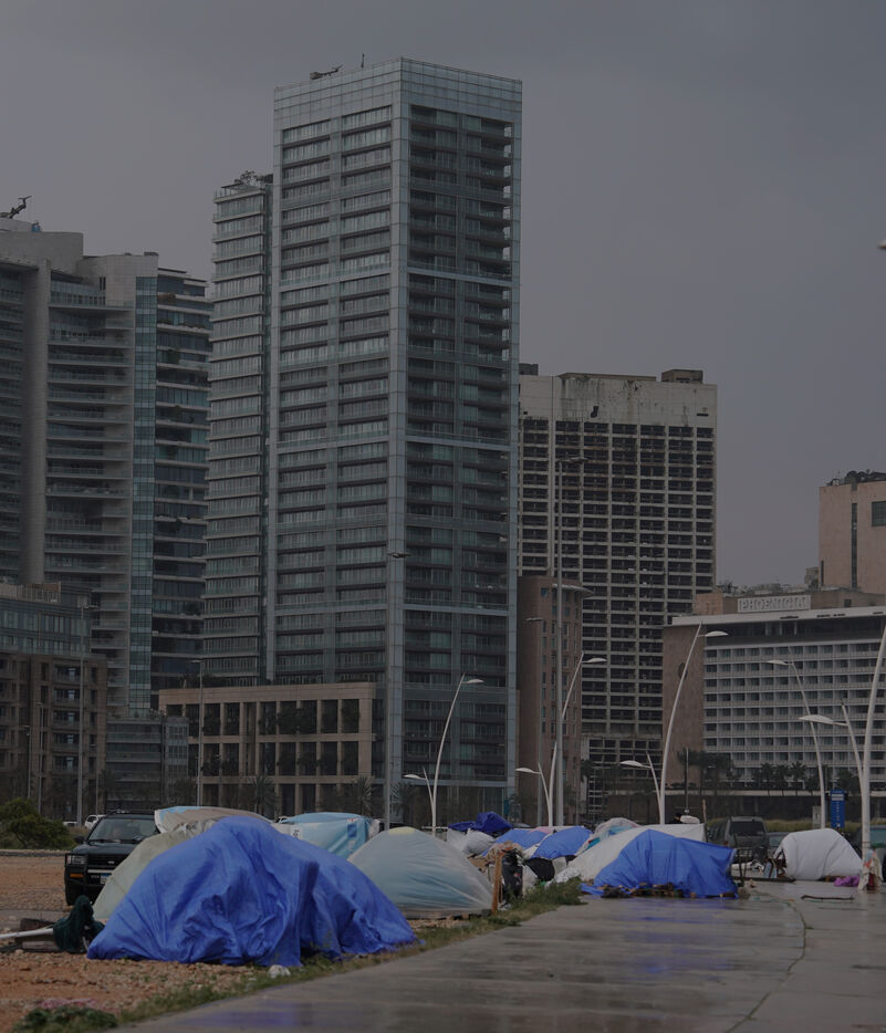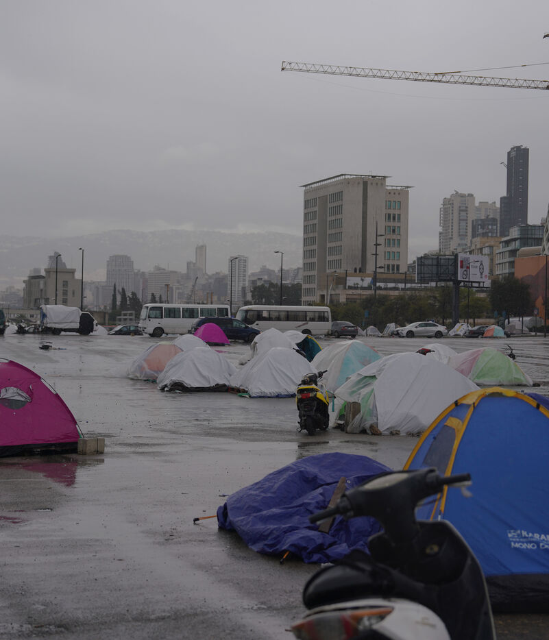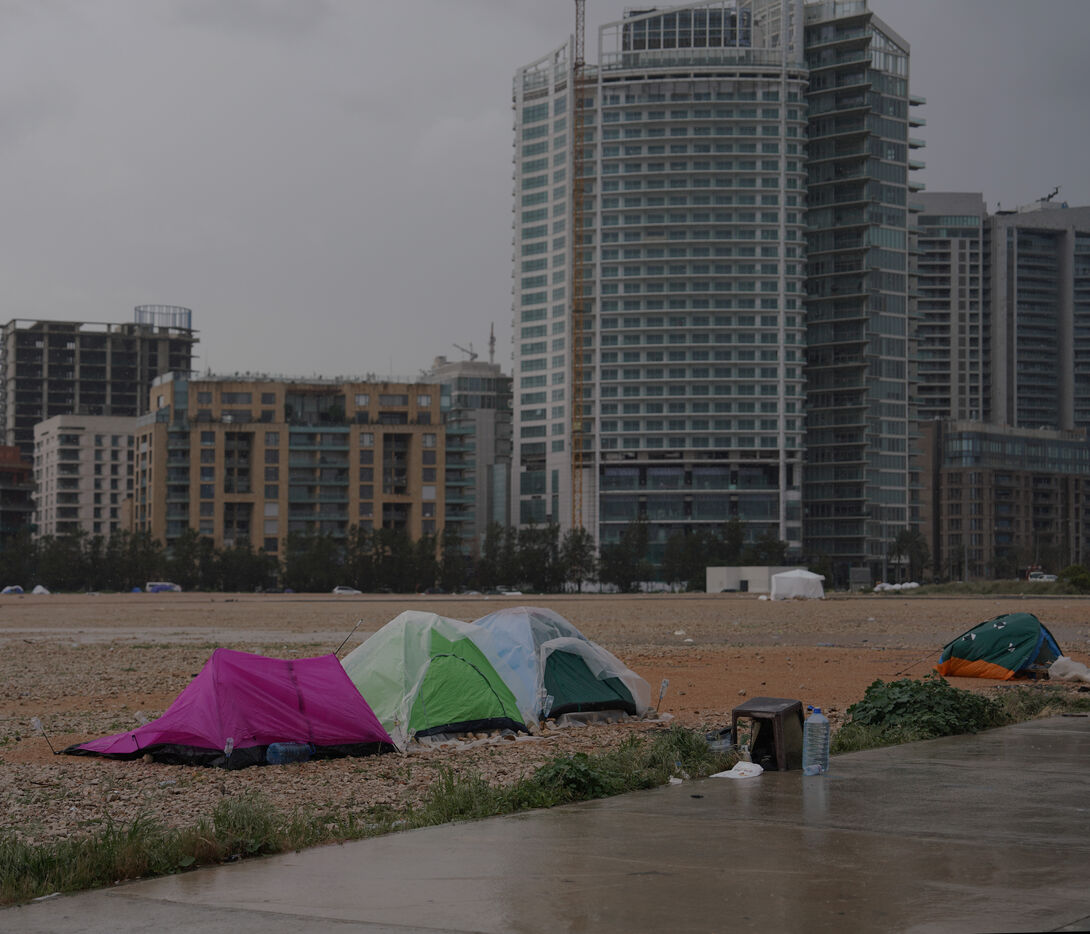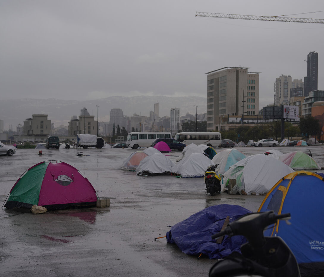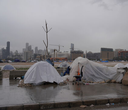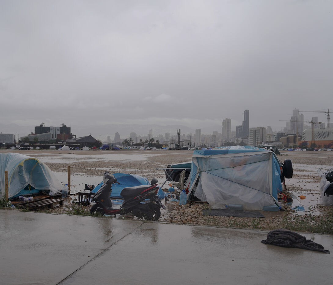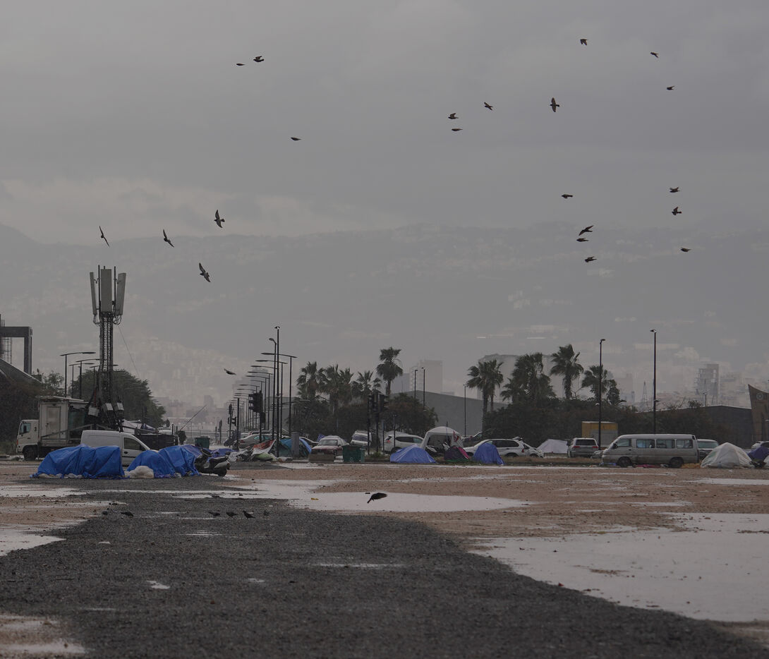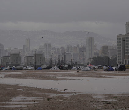 LIBAN : Camps de personnes déplacées sous la pluie sur le front de mer à Beyrouth