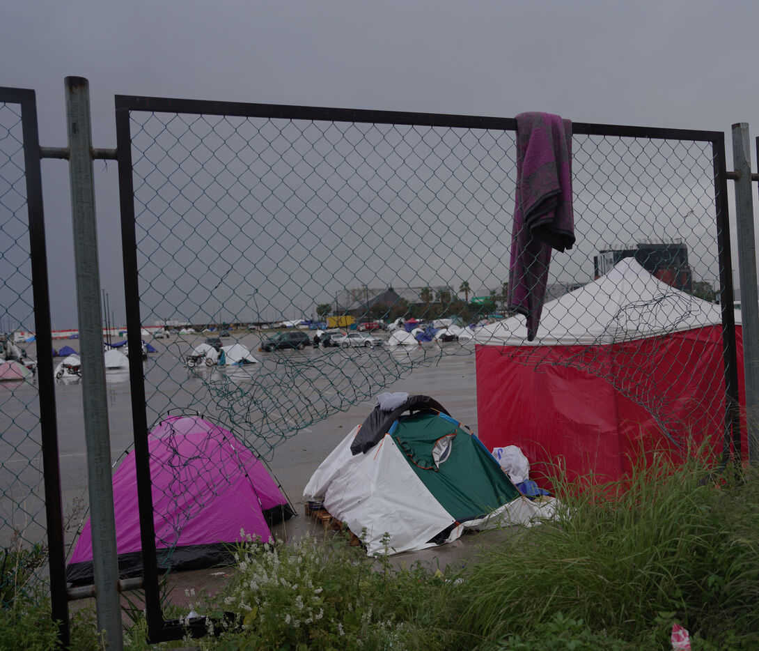 Camps de personnes déplacées sous la pluie sur le front de mer à Beyrouth, le 21 mars 2026.