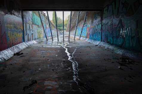 In this second city, a sort of underground city, an architecture is revealed that was not designed for humans, both in the dimensions of the structures and in the structures themselves. Rockfill, spillways, railings, iron stakes, narrow channels, and tunnels nevertheless allow, through a gaping hole, a footbridge, allowing passers-by to cross, monitor, and observe these ultimately inhospitable places. Like a Romanity of the future offers a stroll through this uncomfortable tunnel, revealing the gradual transformation of a rural landscape into an extremely urbanized one.