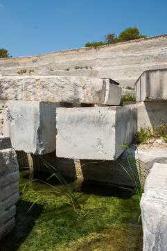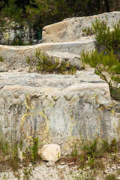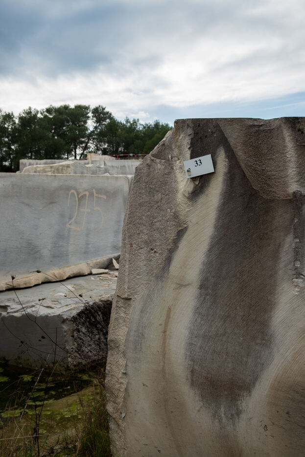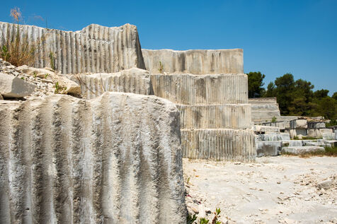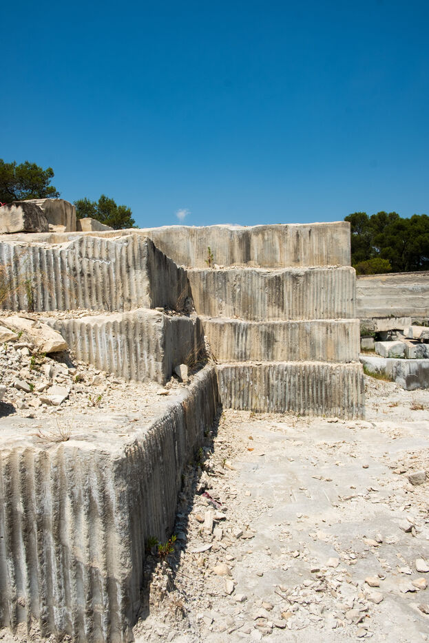 The new Barutel quarry, located on the other side of the Alès road, has been operated by the Sele company since 2018. They use it to extract limestone blocks for the restoration of monuments in Nîmes. "The exceptional hardness of the limestone allows the Nîmes quarrymen to extract blocks several meters long, used in particular for the lintels of the Nîmes Arena," explains Roland Picca, the site director. Formerly operated by Teddy Sala, the site shows traces of older extraction techniques using a drill. Currently, the quarrymen use block cutters, a kind of giant saw, to cut blocks weighing several tons.