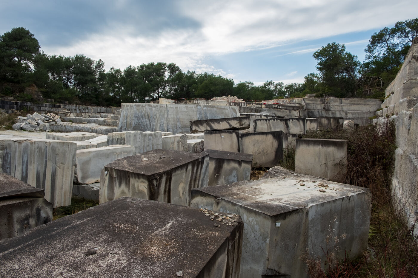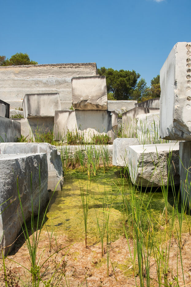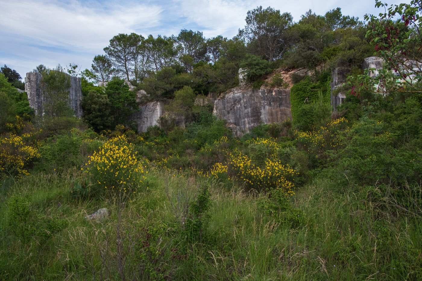 Two limestone quarries face each other north of Nîmes, on the road to Alès, one old and abandoned, the other modern and in operation.