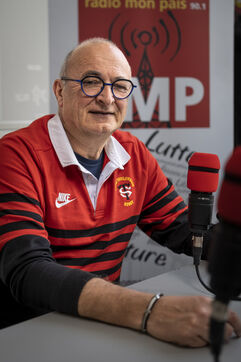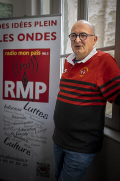 Portrait of Bernard Fauré, co-president of Radio Mon Païs. This radio station was launched underground in 1980 with the support of the CGT and has been broadcasting for more than 40 years to disseminate trade union information.