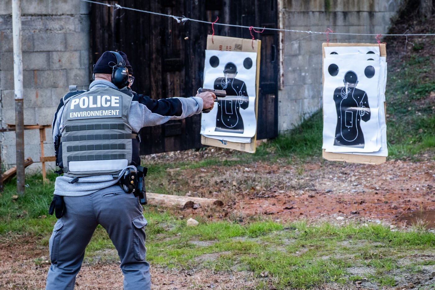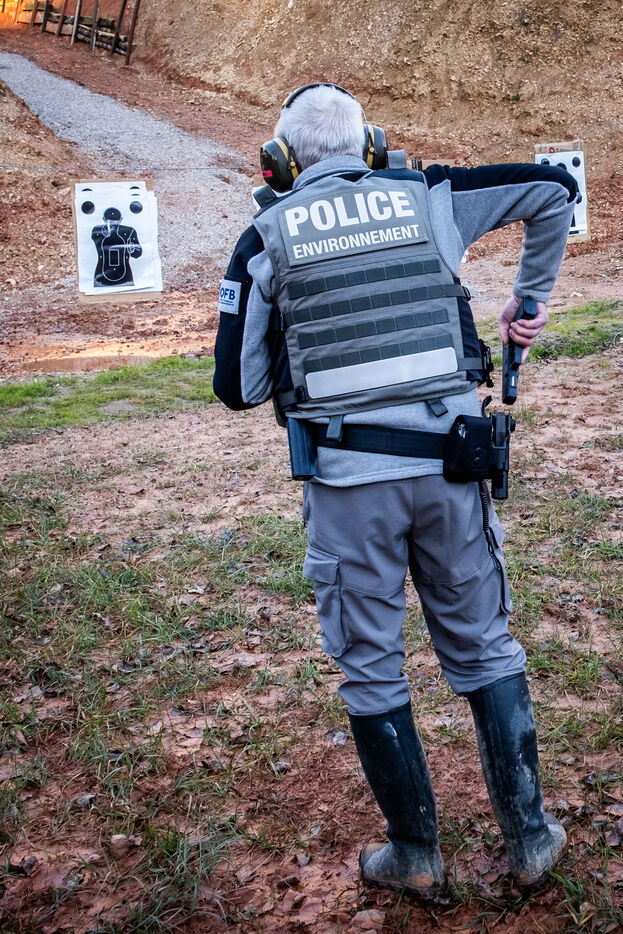 In addition to their protection and control missions, the agents of the Office Français de la Biodiversité (OFB) also have a policing mission. In order to carry out their duties in complete safety, they undergo regular training in shooting and intervention techniques.