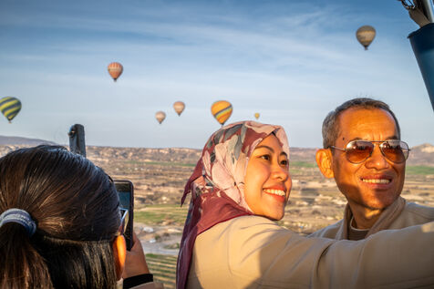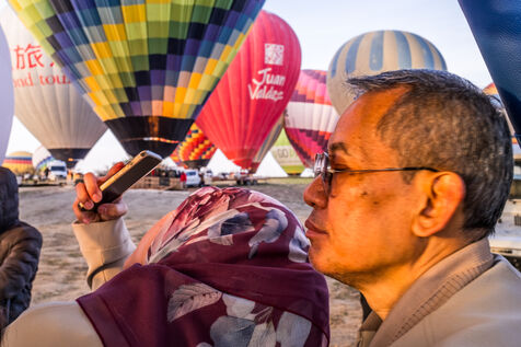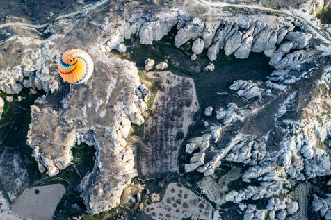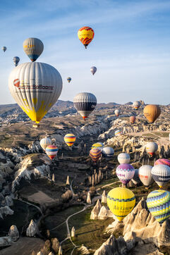 Throughout the tourist season, every morning at dawn, hundreds of hot-air balloons carrying tourists take to the skies above the town of Göreme and the distinctive landscapes of Cappadocia. Thanks to – or perhaps because of – social media, this attraction is now known throughout the world, and visitors flock from far and wide to admire or experience this spectacle.