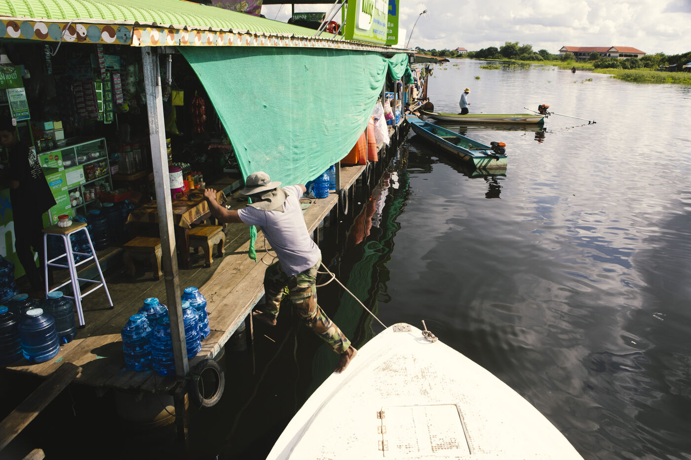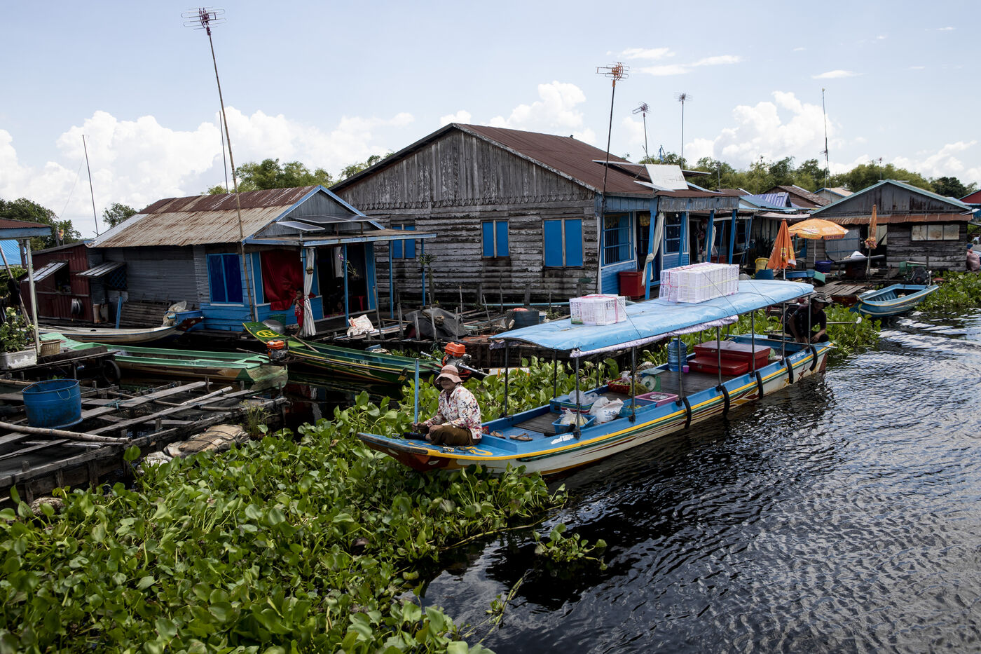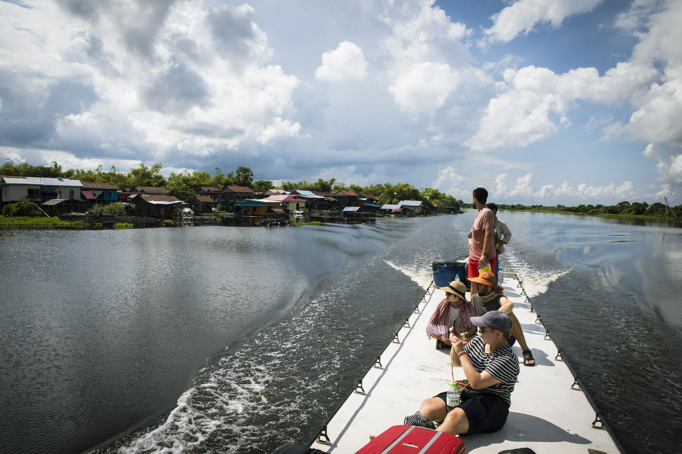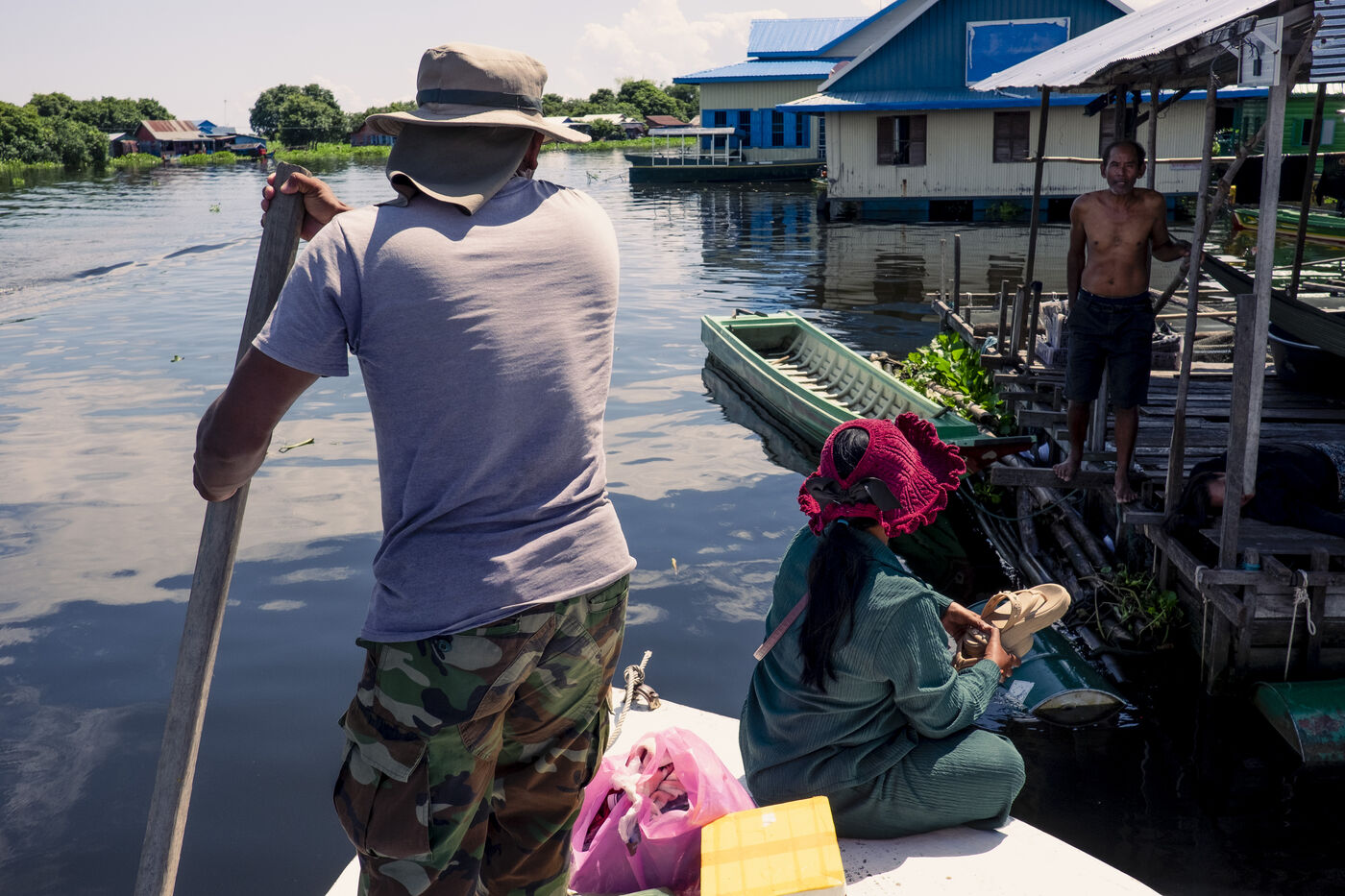 Durant la saison des pluies, entre Battambang et Siem Reap, un petit bateau taxi de la compagnie Angkor Express Boat, fondée par des cambodgiens, effectue le transport de passagers et le ravitaillement des villages flottants isolés sur la Sangker River.