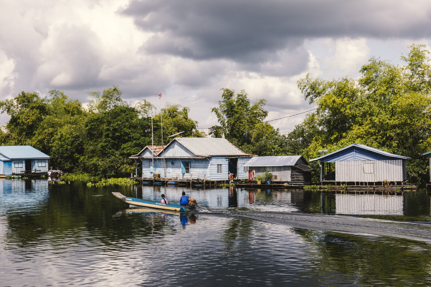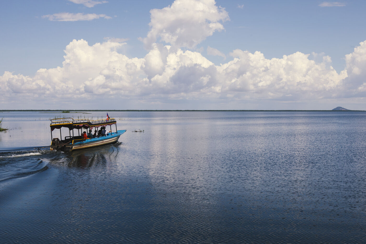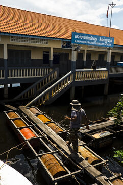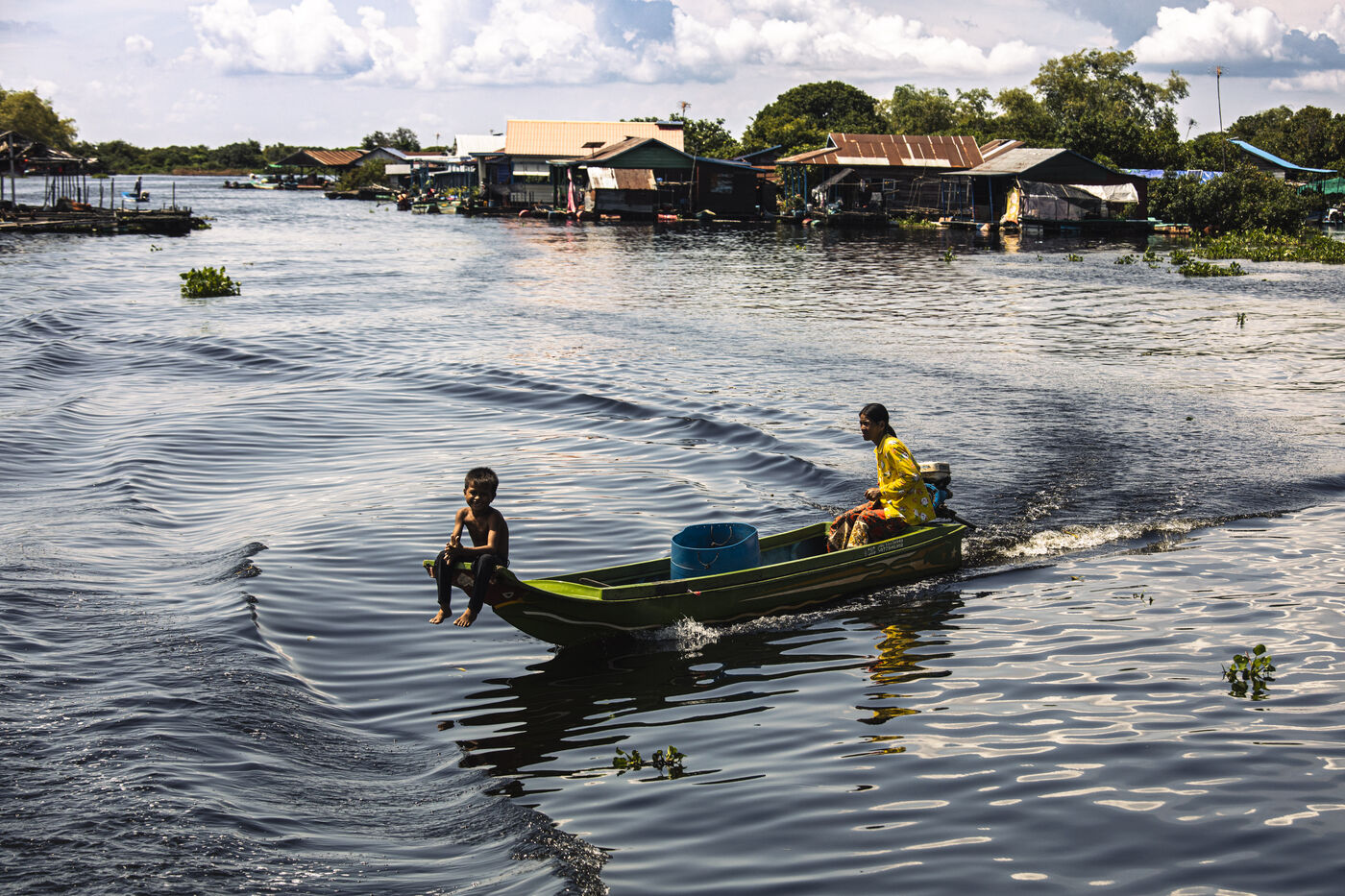 Durant la saison des pluies, entre Battambang et Siem Reap, un petit bateau taxi de la compagnie Angkor Express Boat, fondée par des cambodgiens, effectue le transport de passagers et le ravitaillement des villages flottants isolés sur la Sangker River.