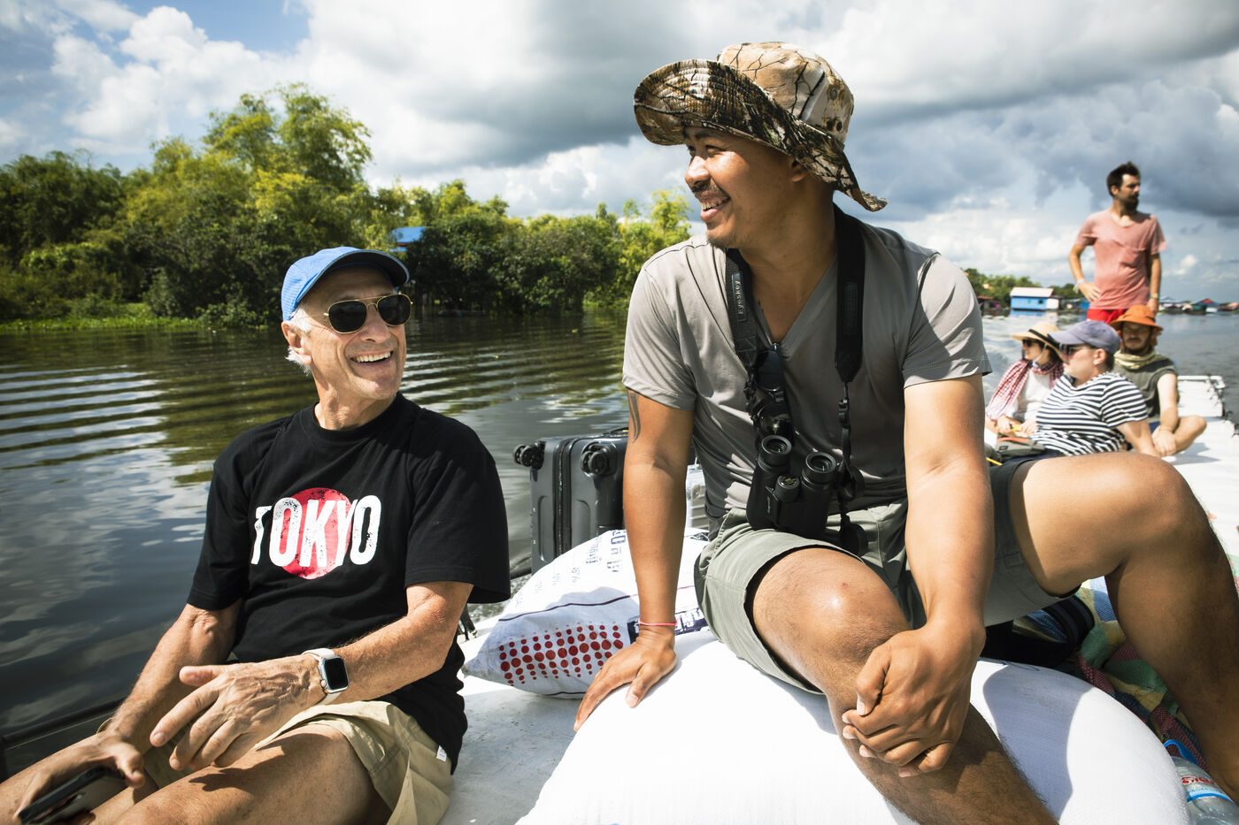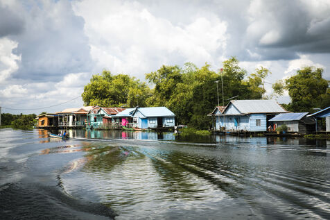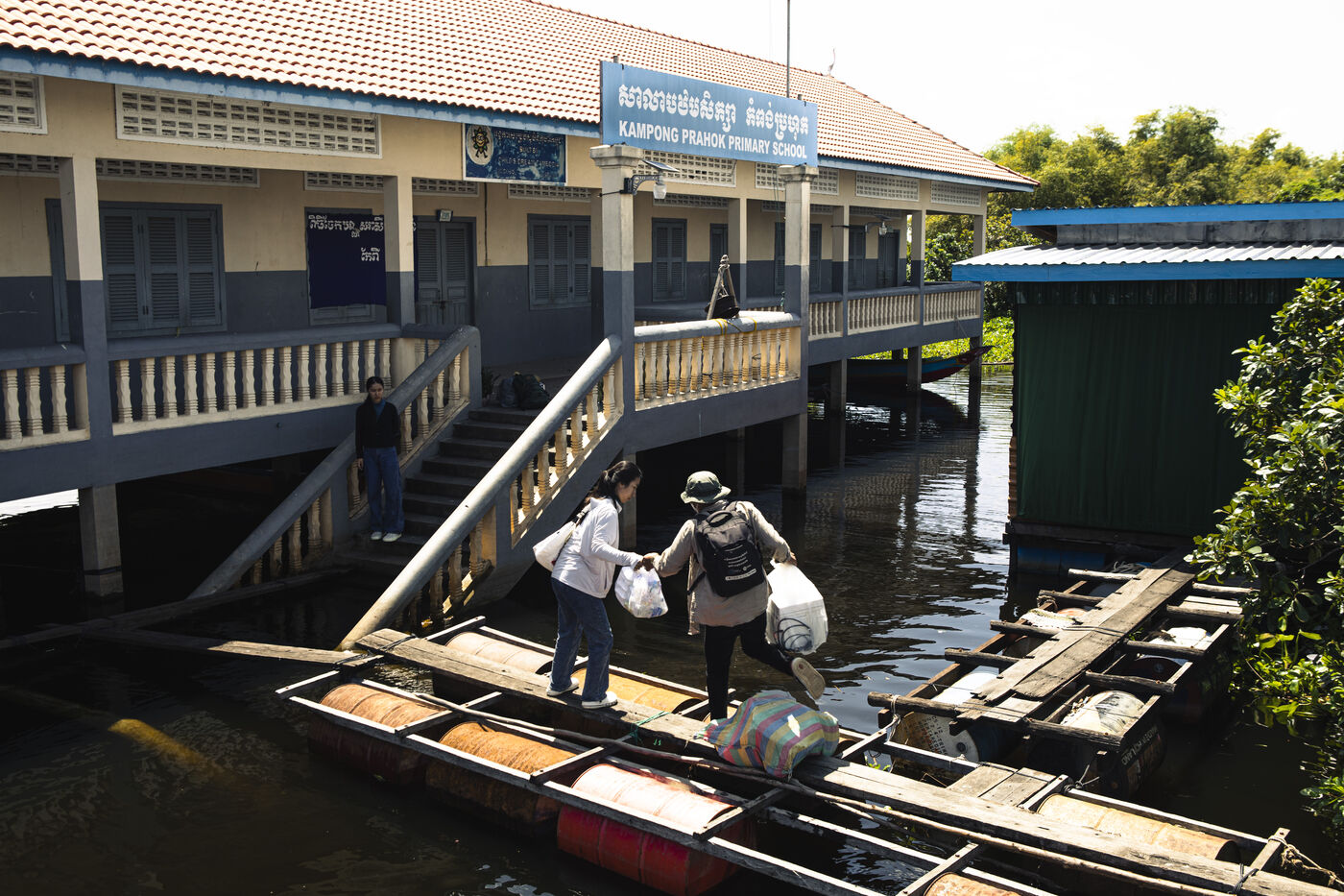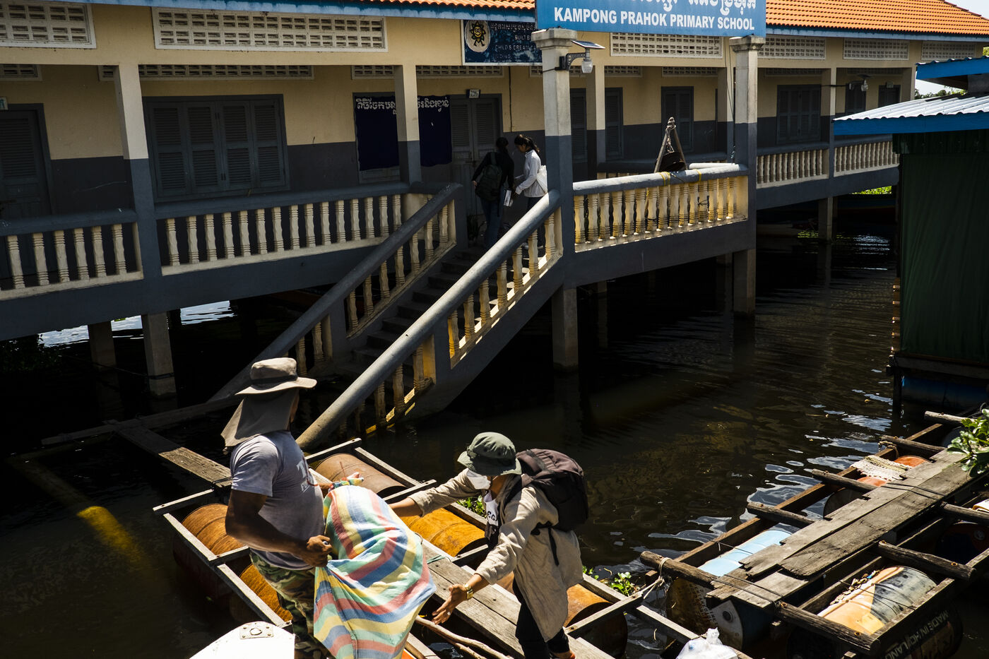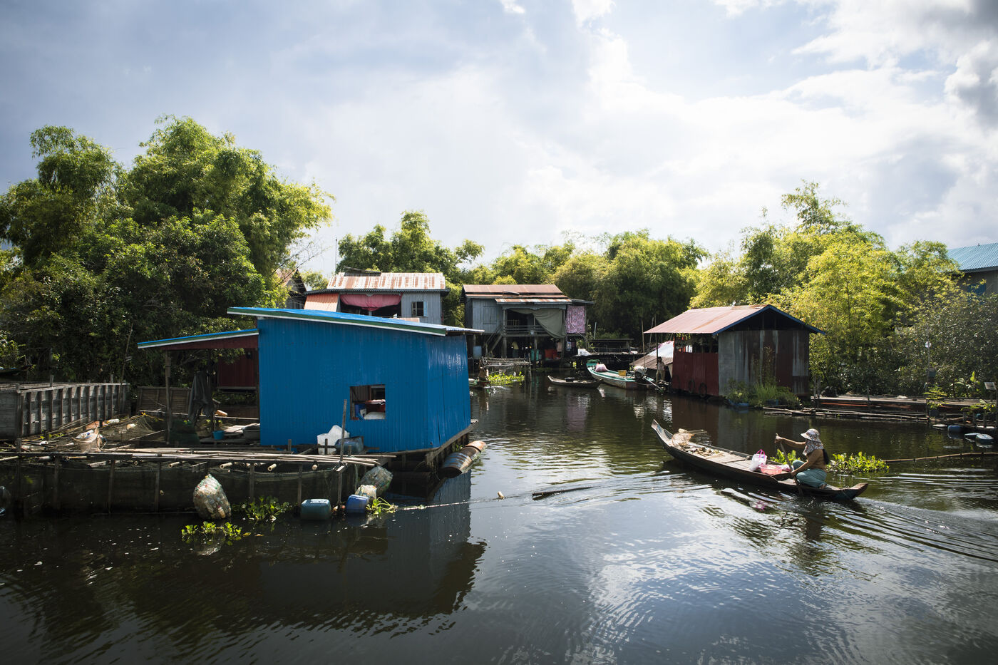 Durant la saison des pluies, entre Battambang et Siem Reap, un petit bateau taxi de la compagnie Angkor Express Boat, fondée par des cambodgiens, effectue le transport de passagers et le ravitaillement des villages flottants isolés sur la Sangker River.