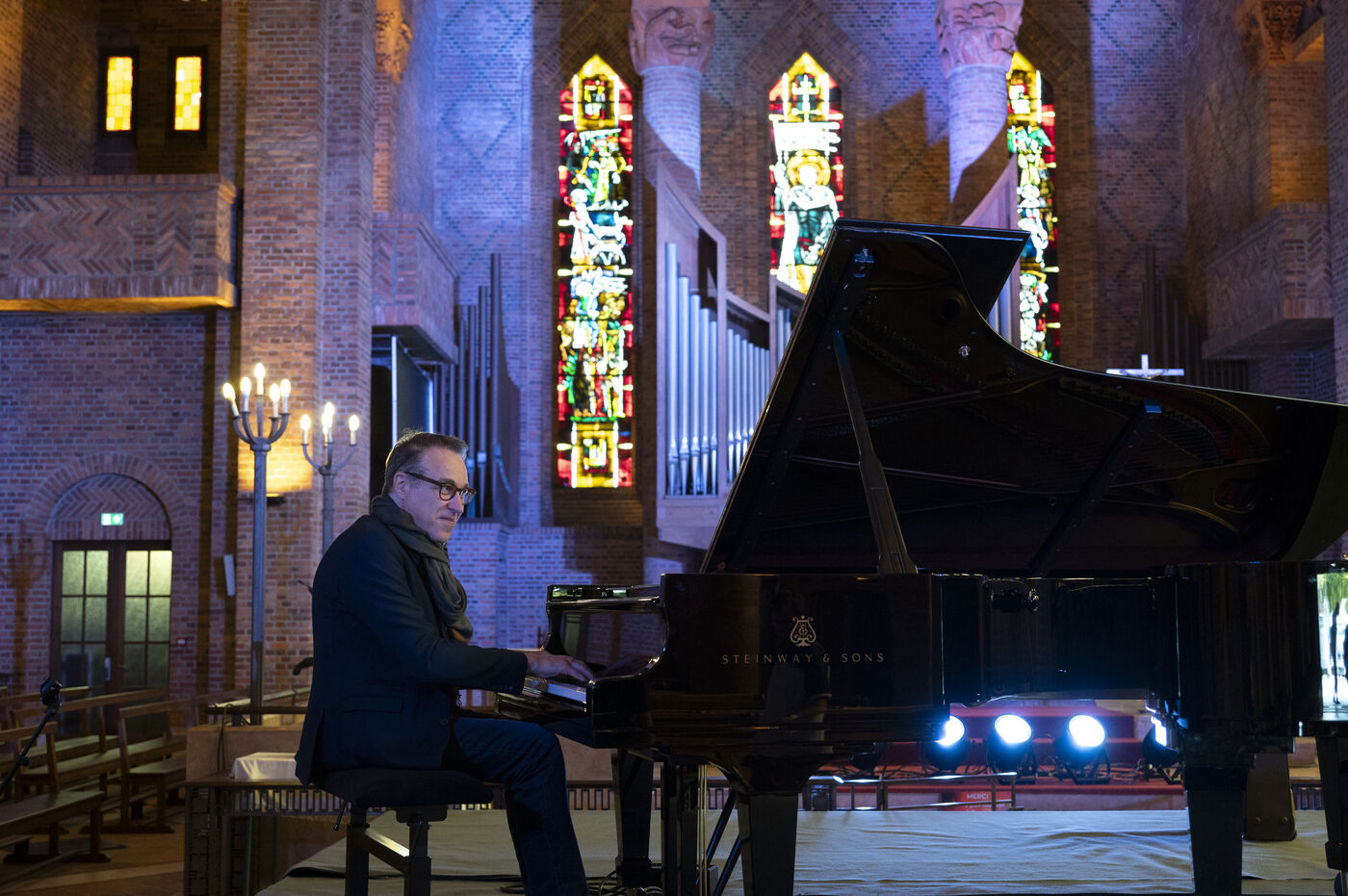 Improvisation concert for two pianos, a duel between Jean François Zygel and André Manoukian at the church of Sainte Jeanne d'Arc in Gien.